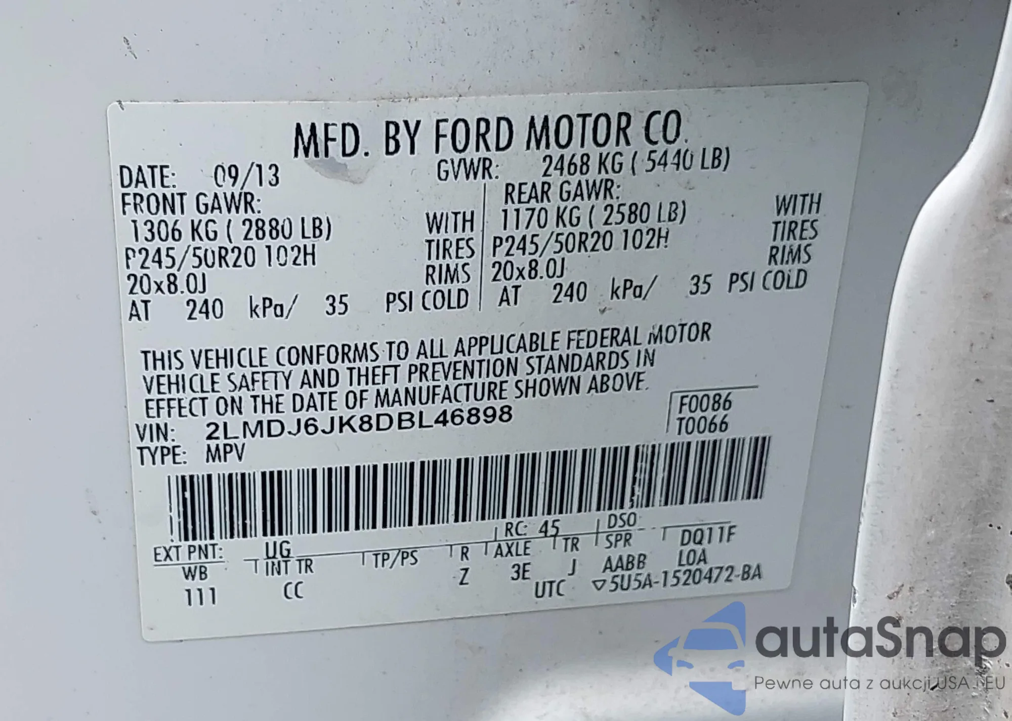 • VIN 2LMDJ6JK8DBL46898