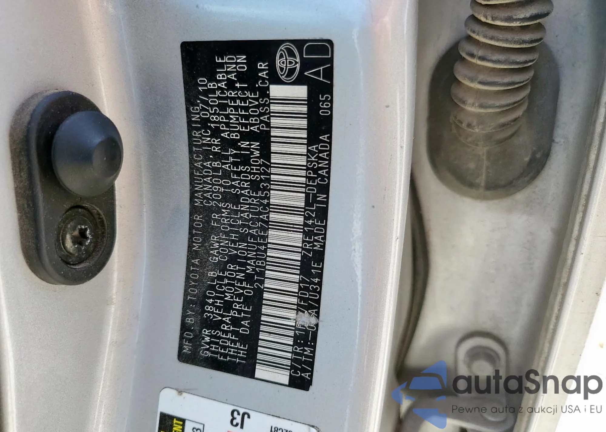 • VIN 2T1BU4EE7AC453127