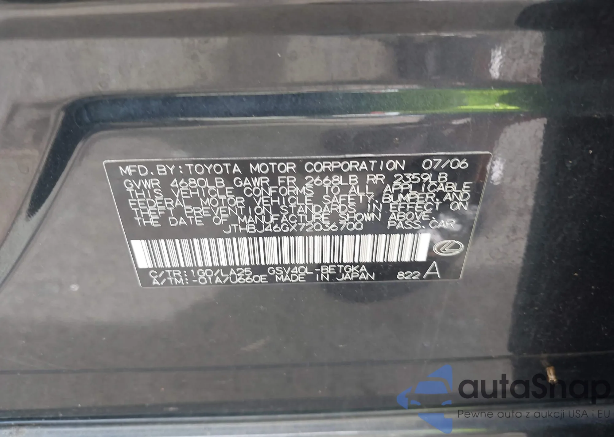 LOT: 42911149 VIN: JTHBJ46GX72036700