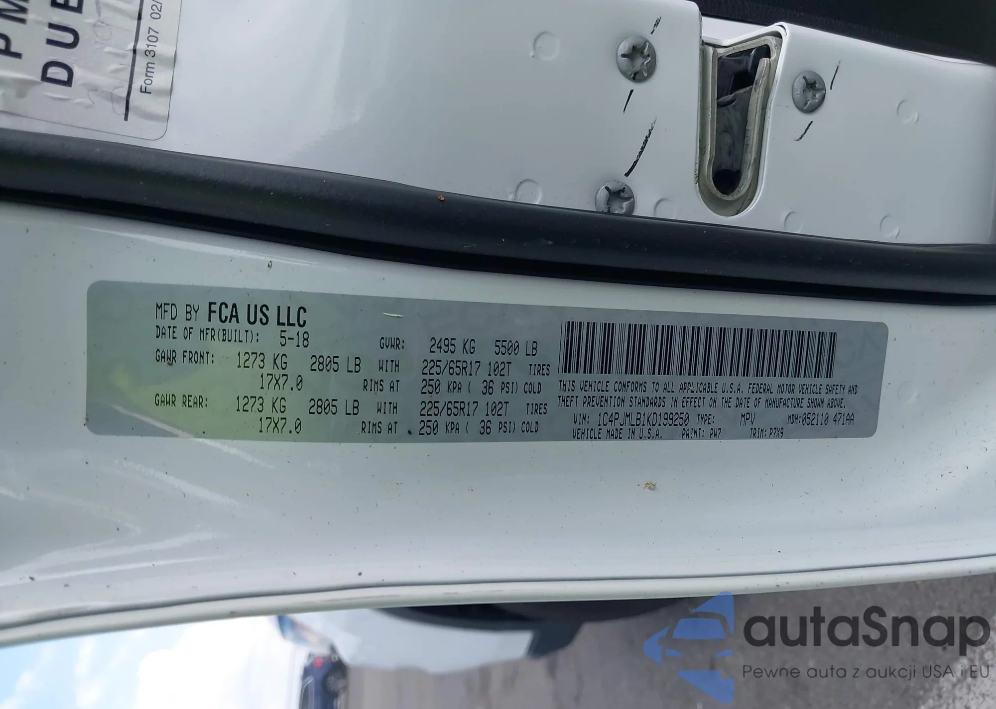LOT: 42238552 VIN: 1C4PJMLBXKD229927