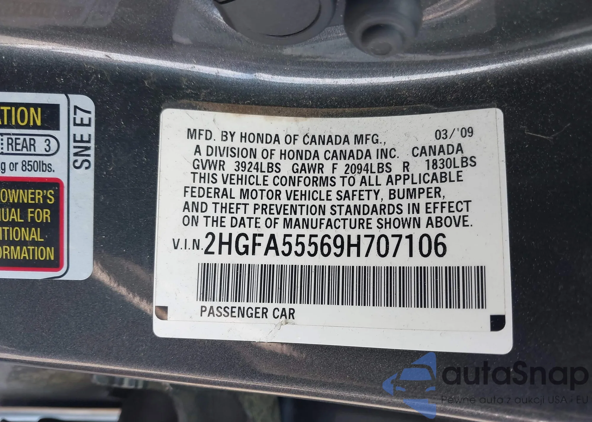 • VIN 2HGFA55569H707106