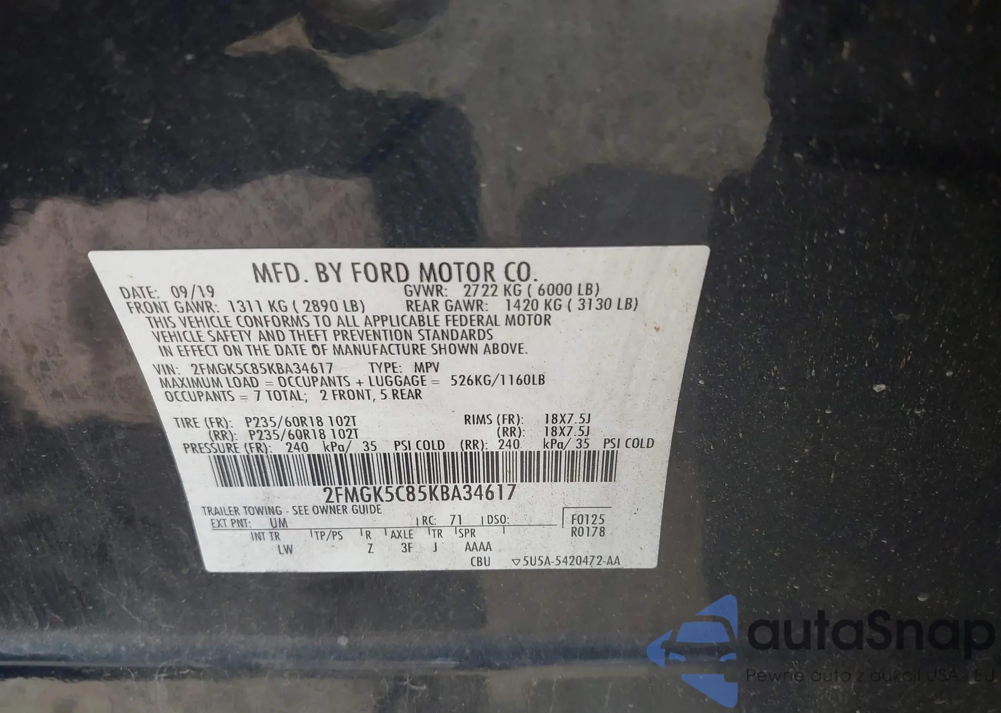 • VIN 2FMGK5C85KBA34617