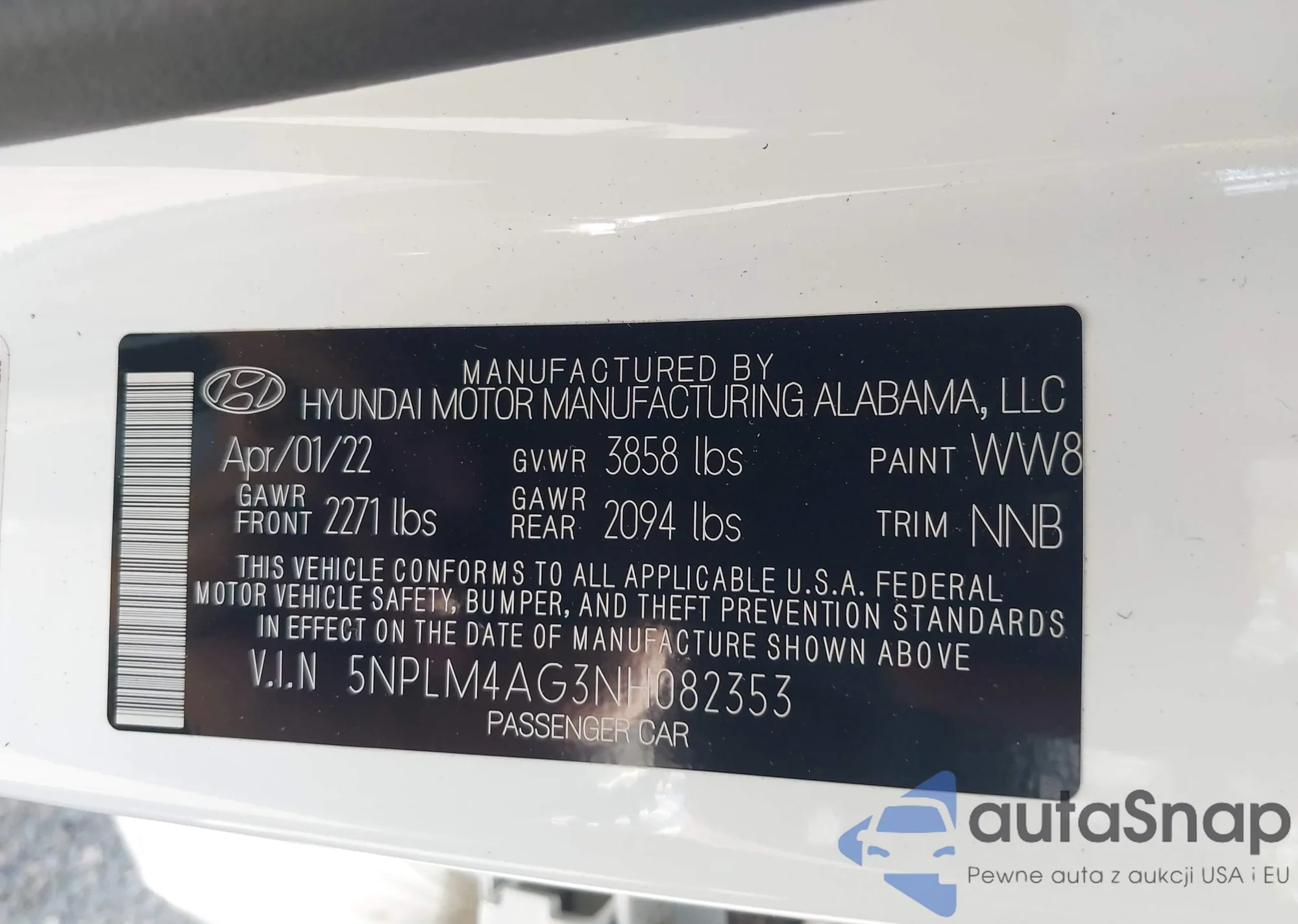 • VIN 5NPE34AF4HH564627