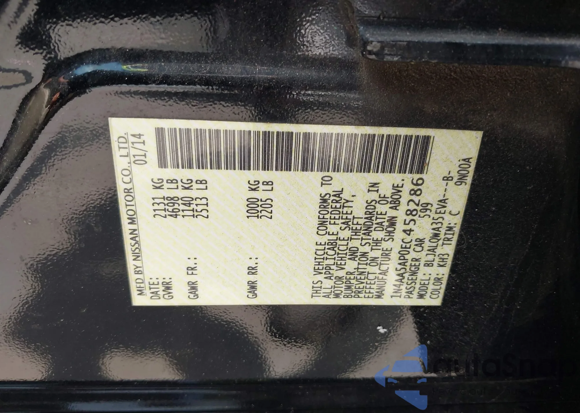 • VIN 1N4AA5AP0EC458286