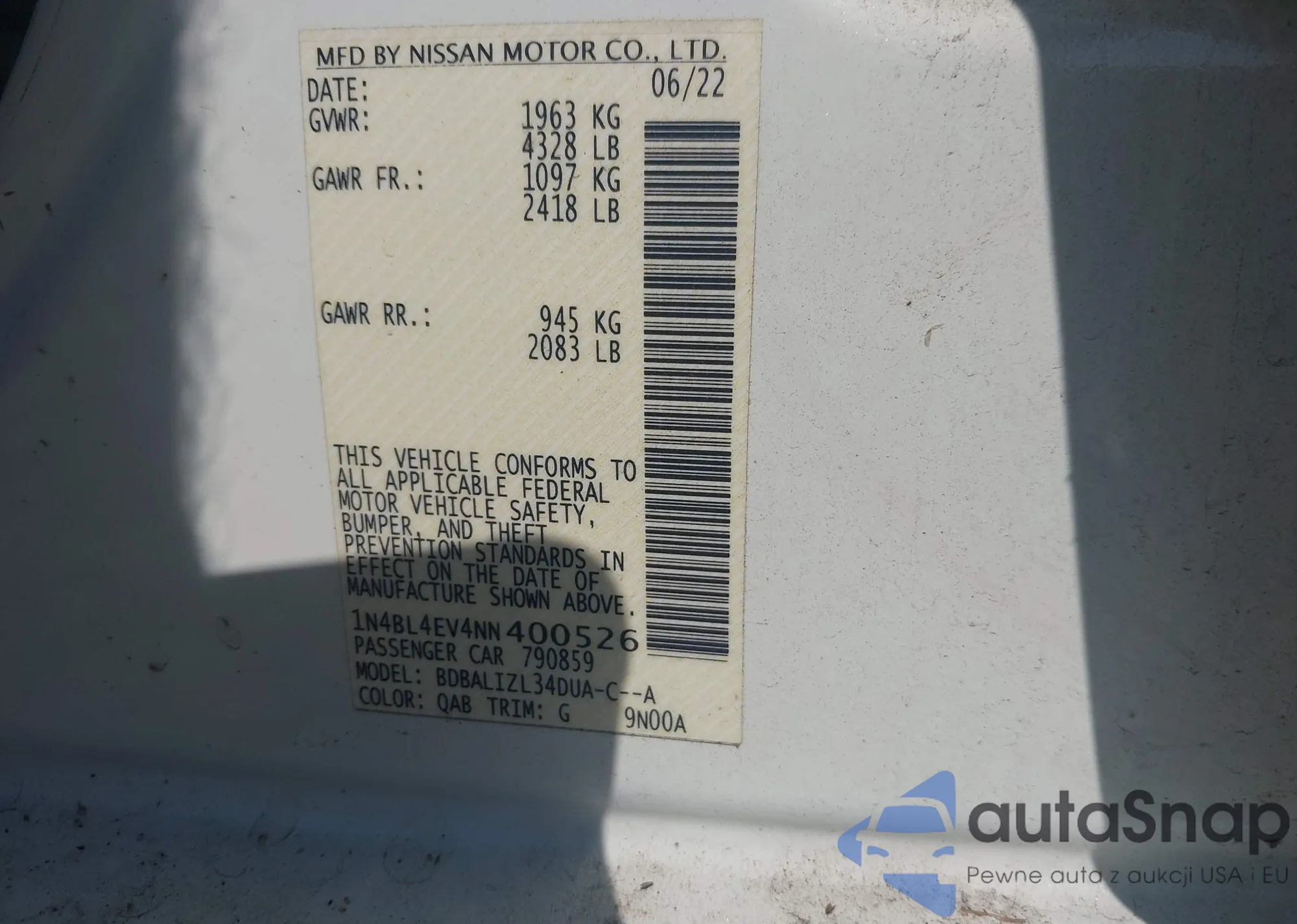 LOT: 42577374 VIN: 1N4AA5AP0EC458286