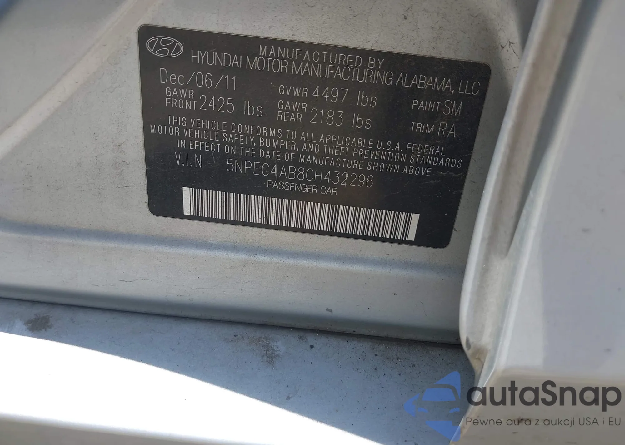 • VIN 5NPEC4AB8CH432296