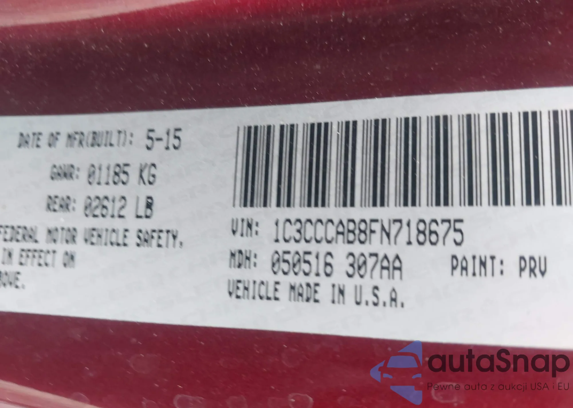• VIN 1C3CCCAB8FN718675