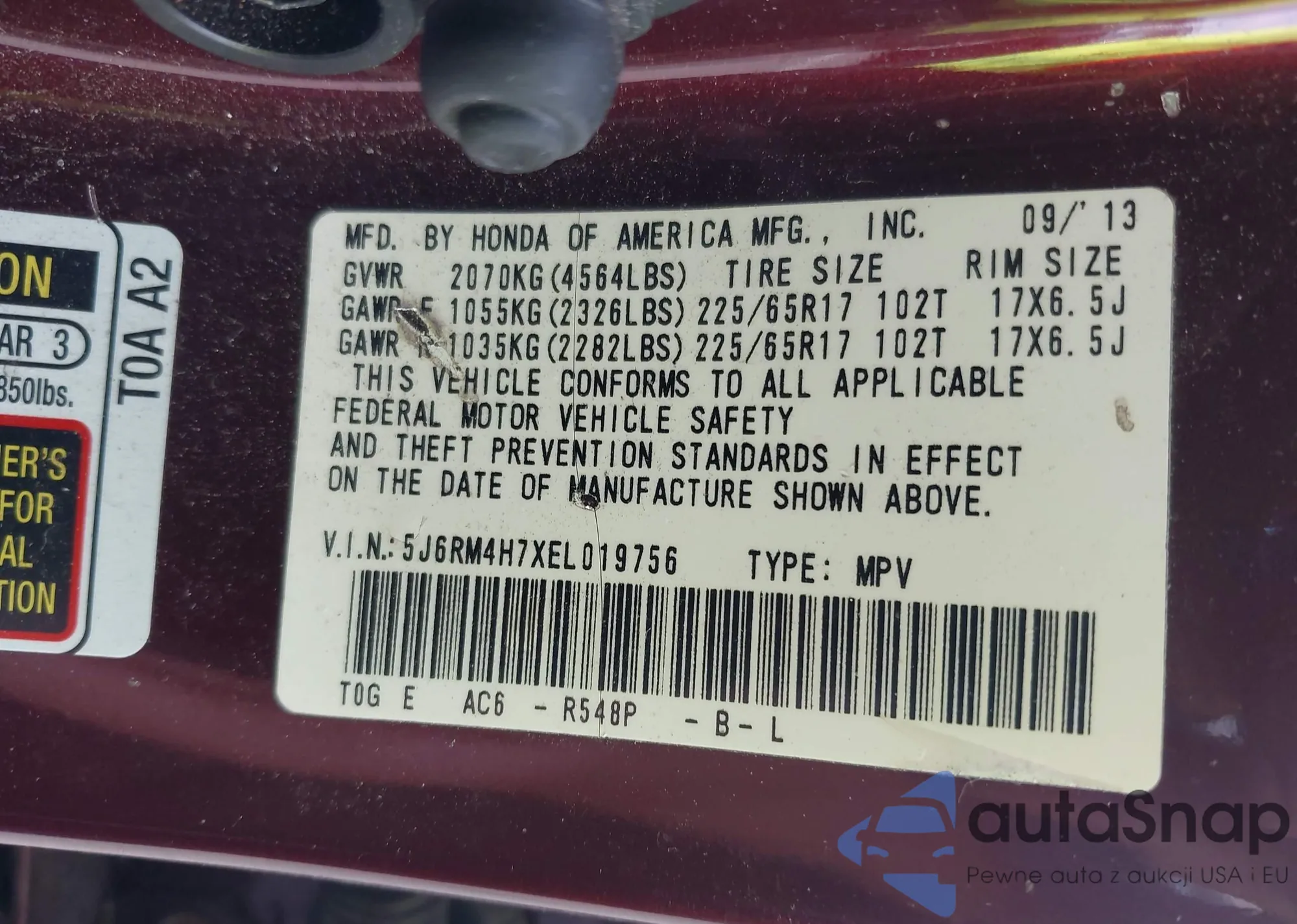 • VIN 5J6RM4H7XEL019756
