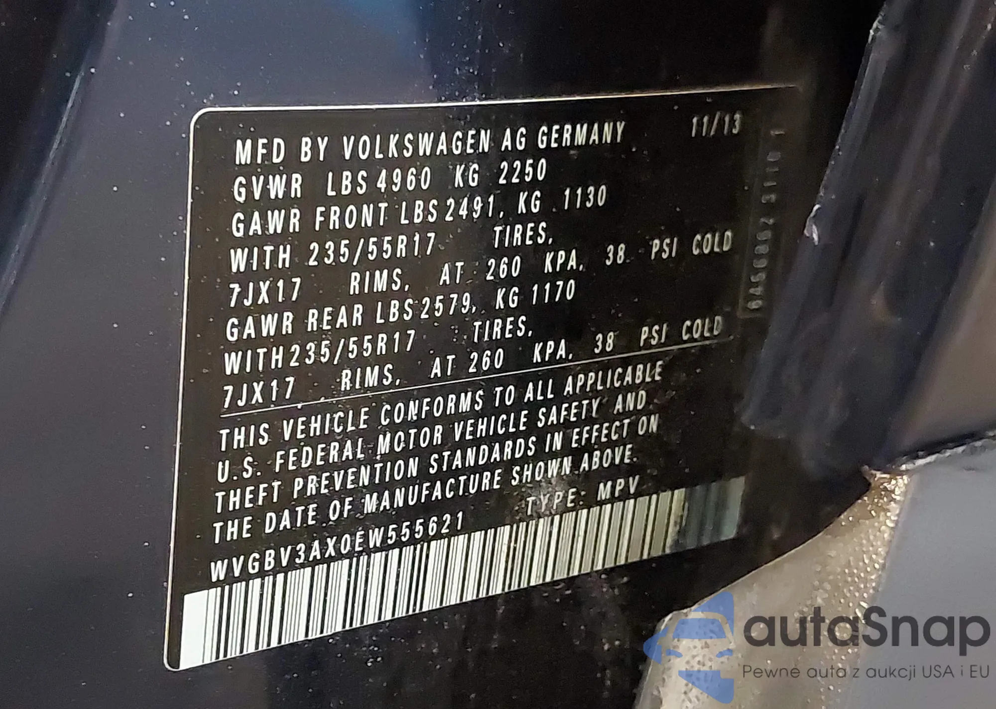 • VIN WVGBV3AX0EW555621