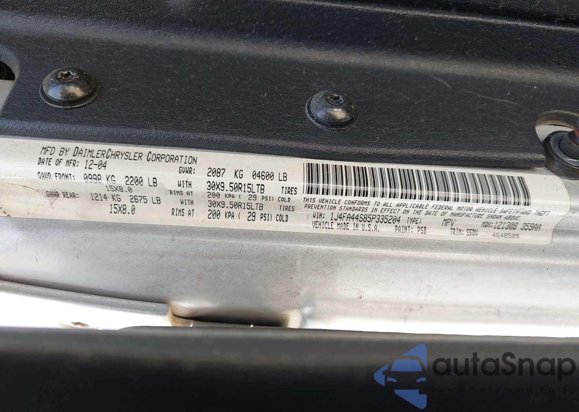 • VIN 1J4FA44S85P335204