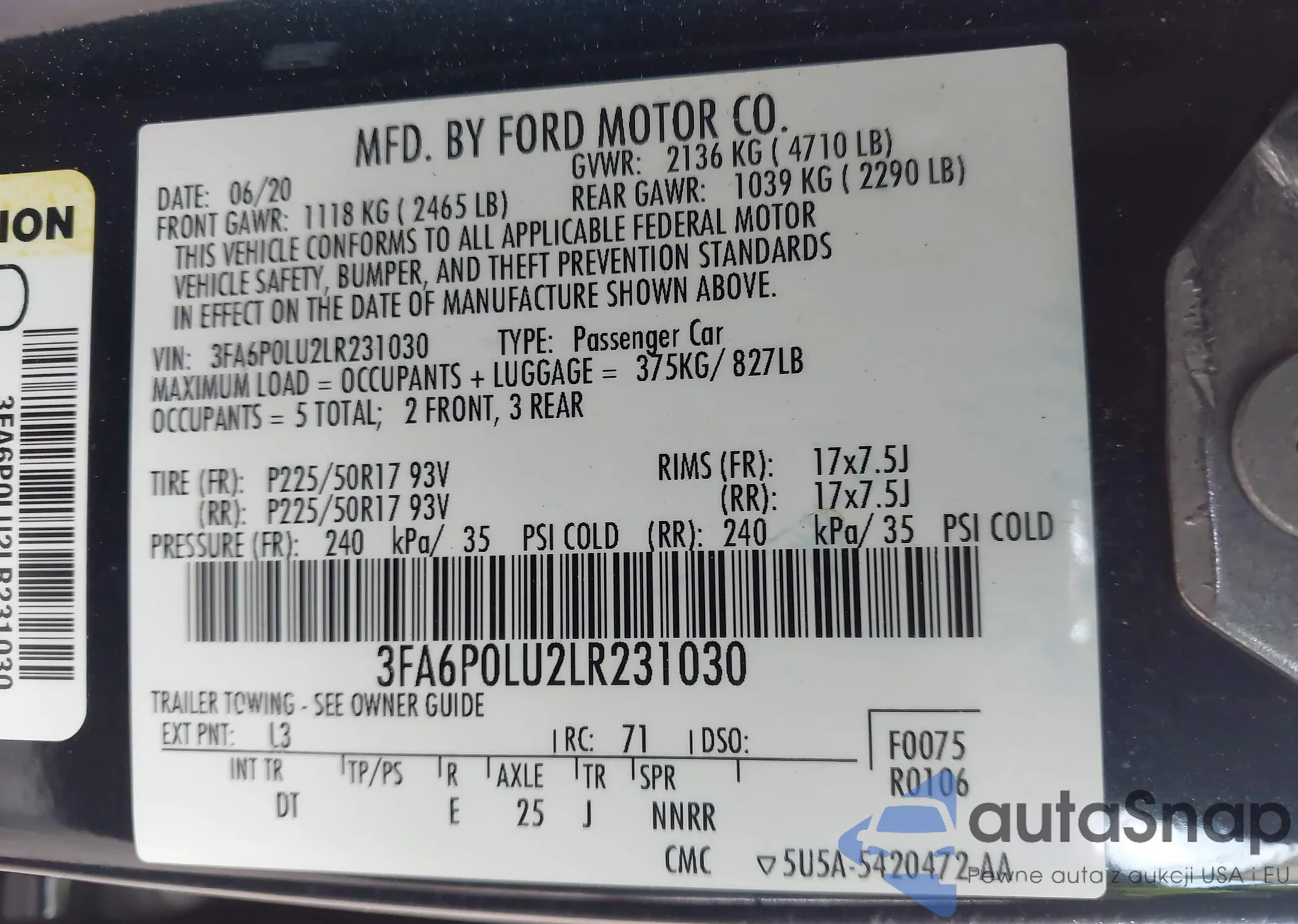 • VIN 3FA6P0LU2LR231030