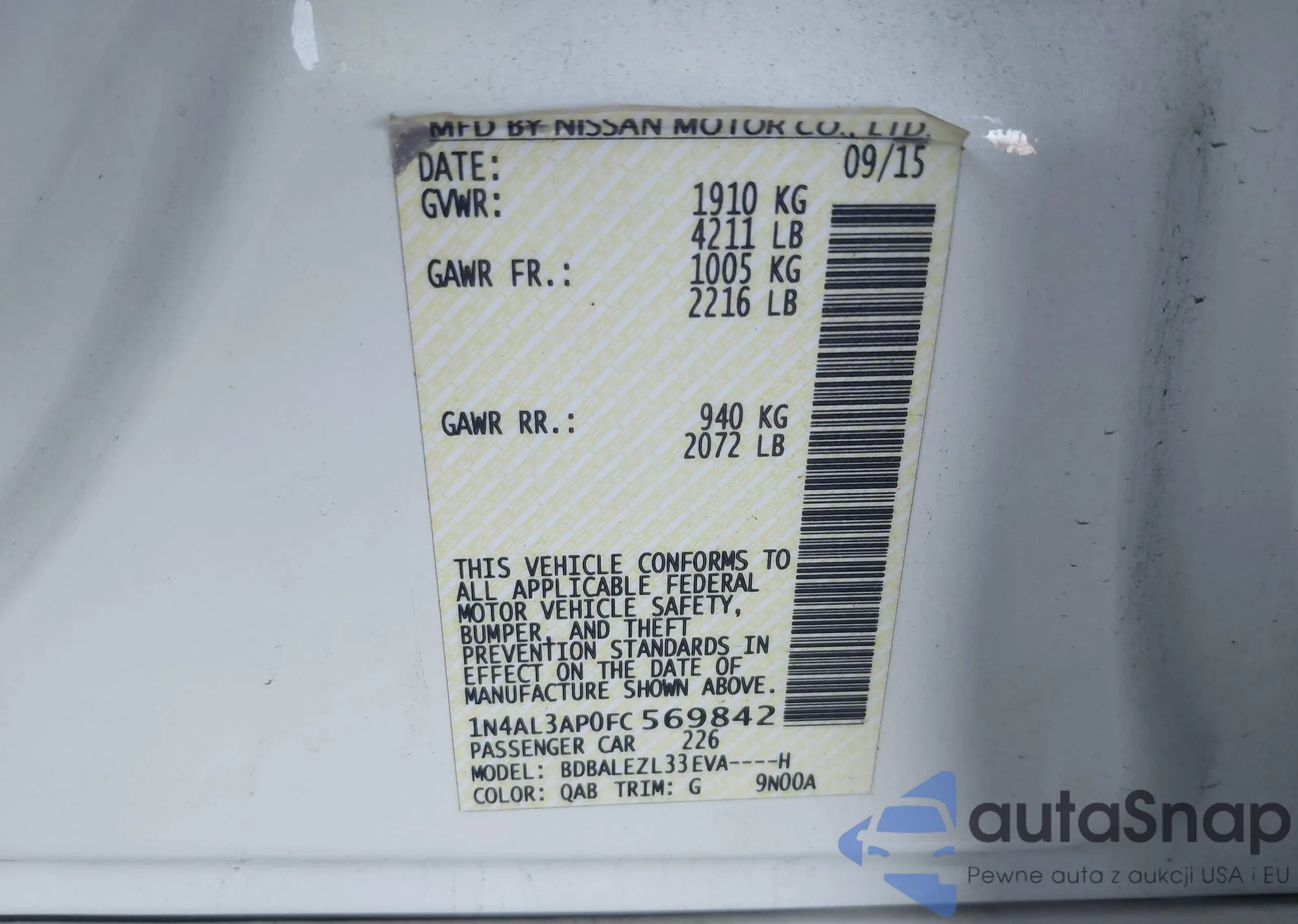 LOT: 42917280 VIN: 1N4AL3AP0FC569842