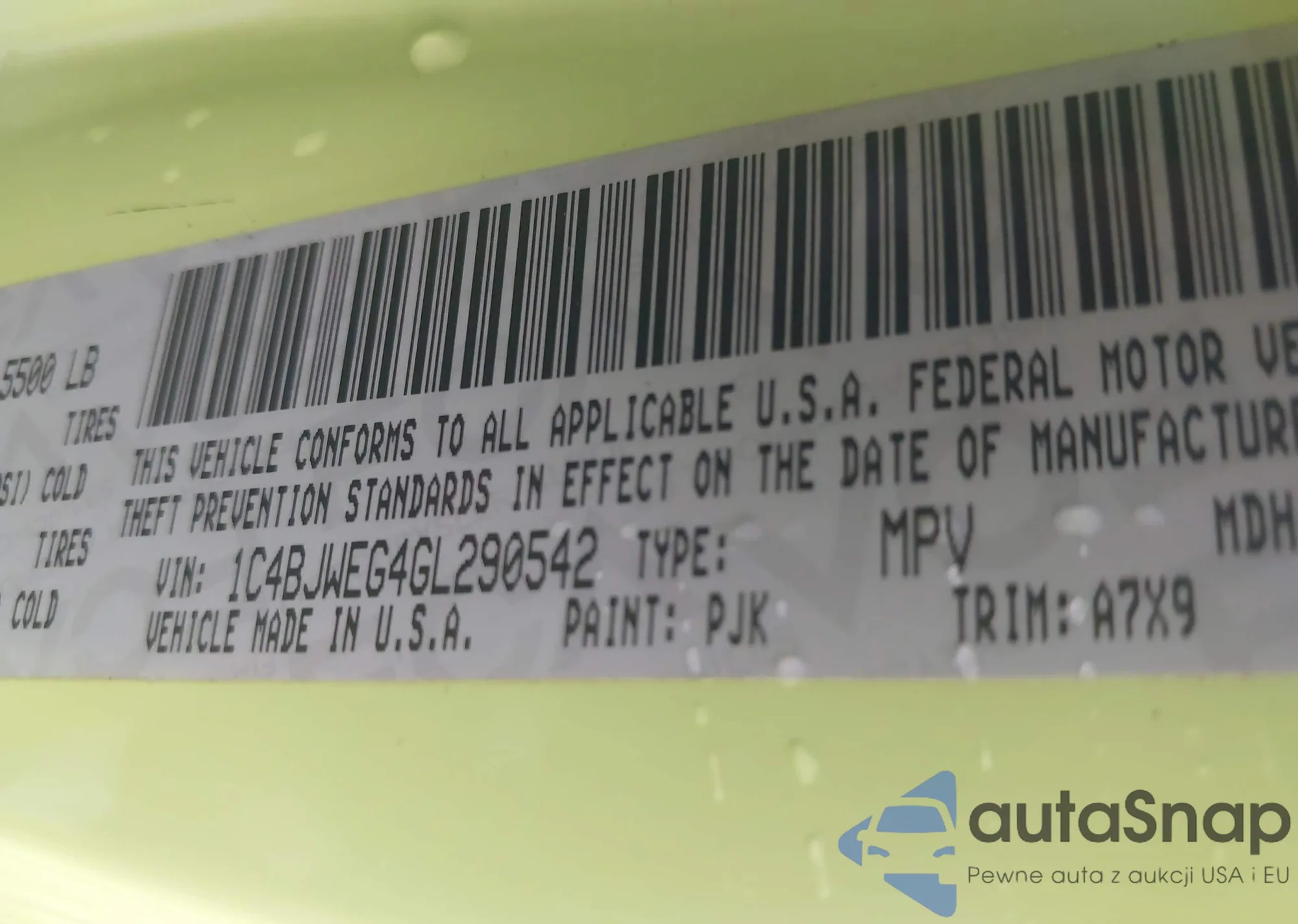 LOT: 42921543 VIN: 1C4BJWEG4GL290542