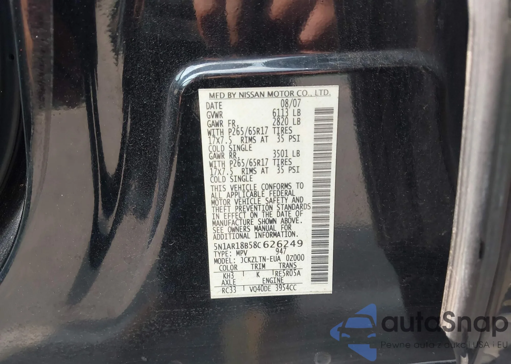 • VIN 5N1AR18B58C626249