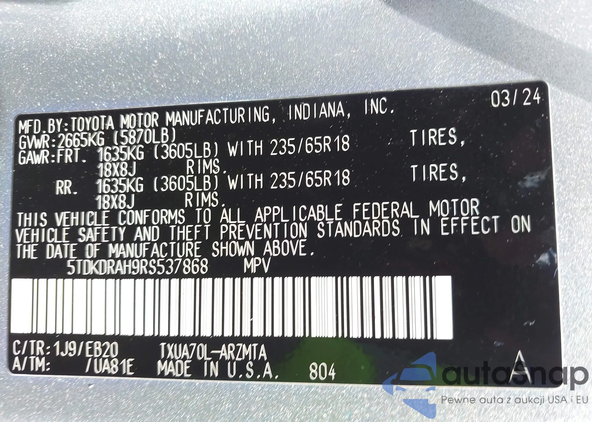 • VIN 5TDKDRAH9RS537868
