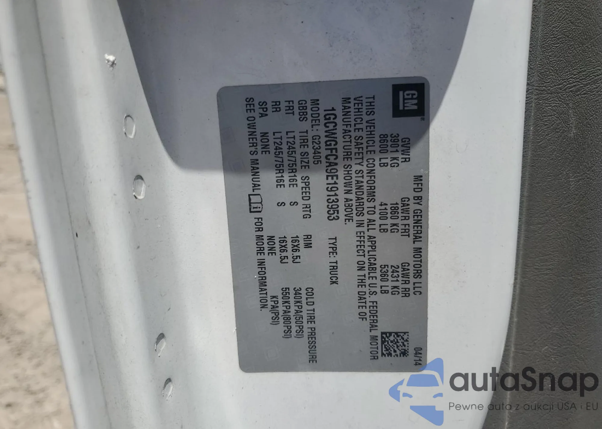 LOT: 66287255 VIN: 1GCWGFCA9E1913953