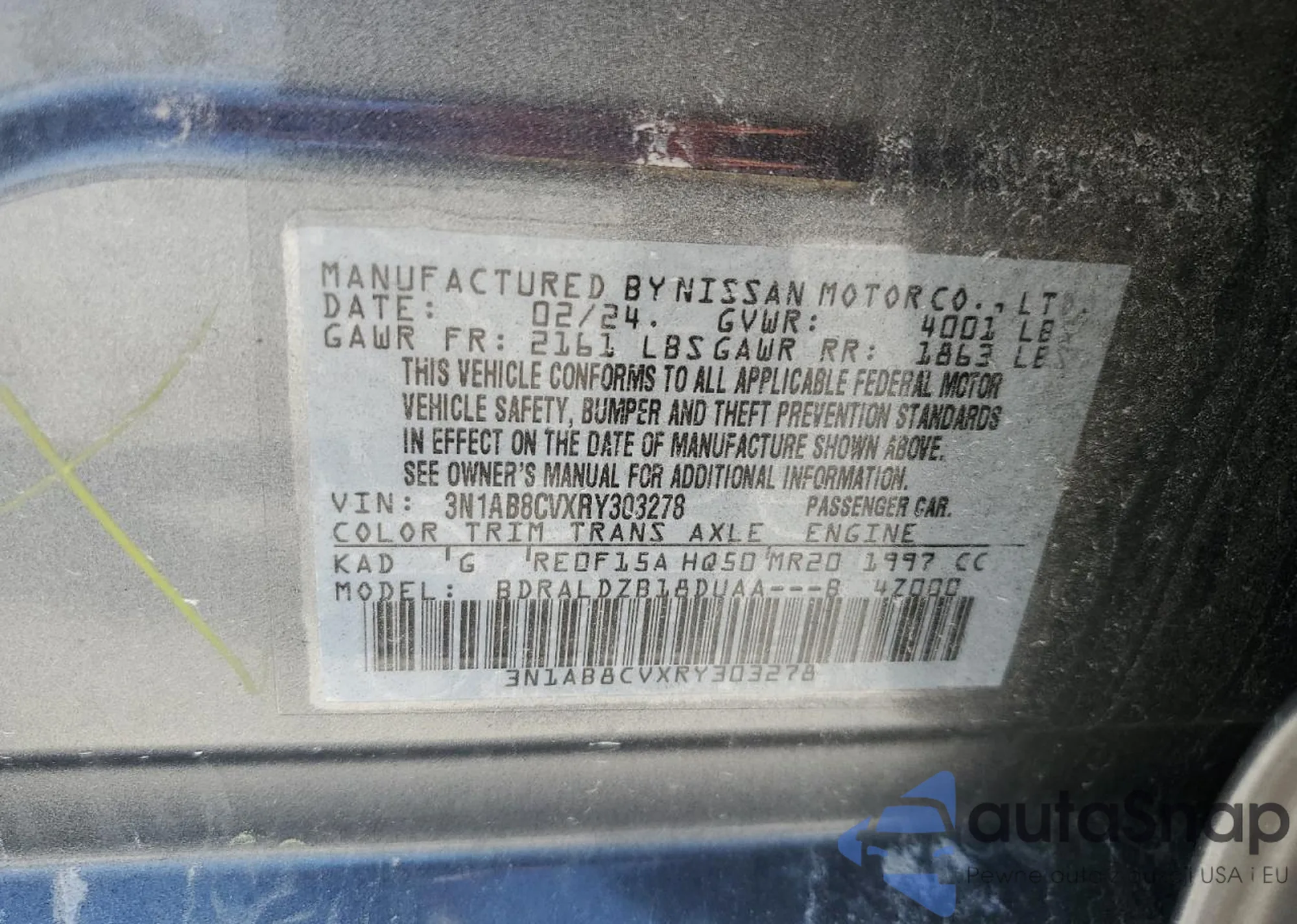 • VIN 3N1AB8CVXRY303278