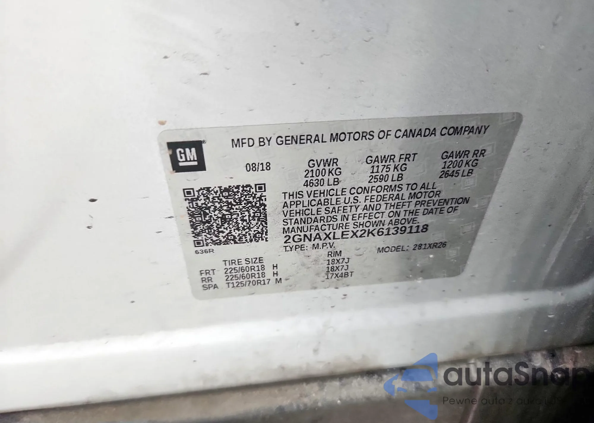• VIN 2GNAXLEX2K6139118