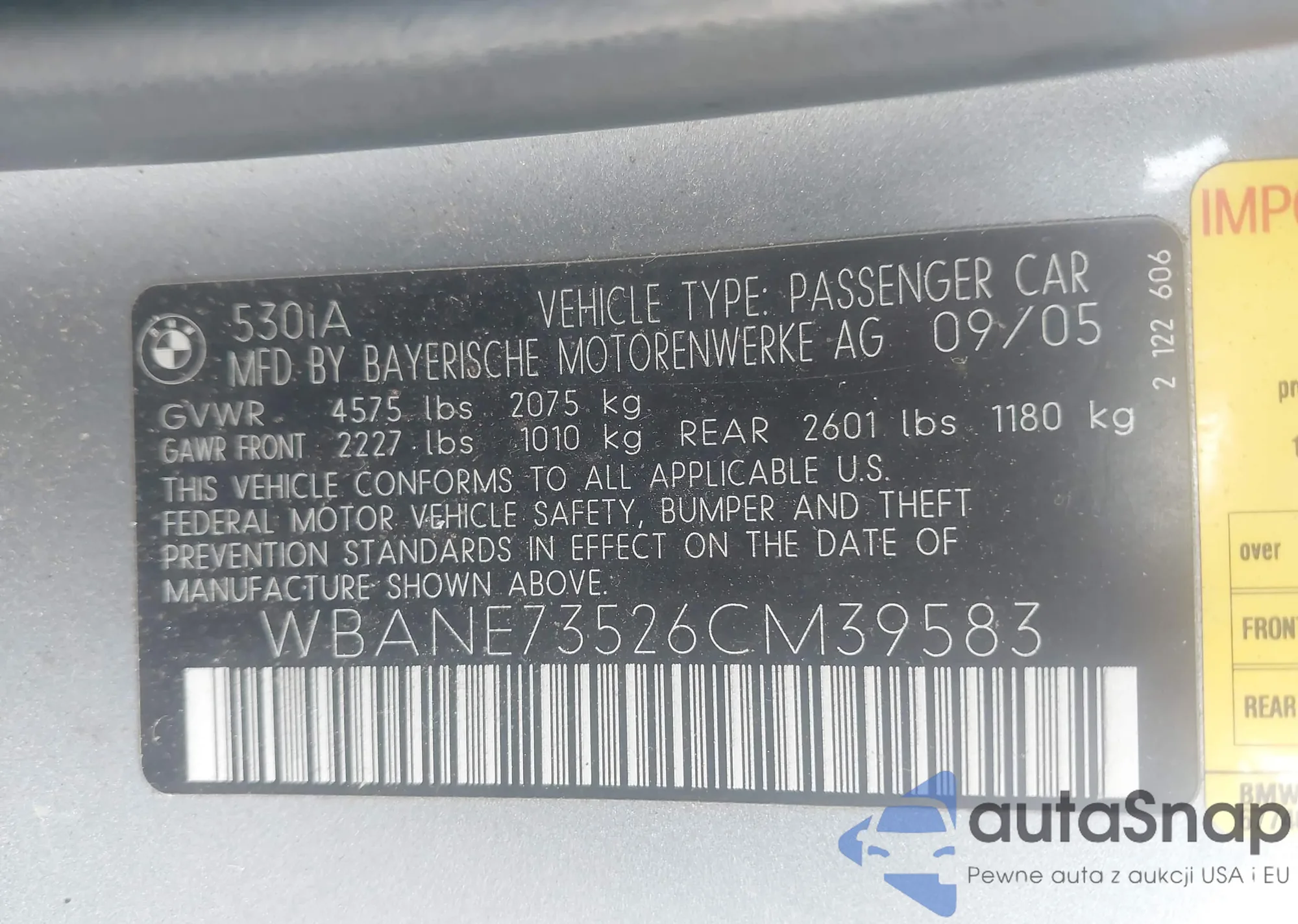 LOT: 42791937 VIN: WBANE73526CM39583