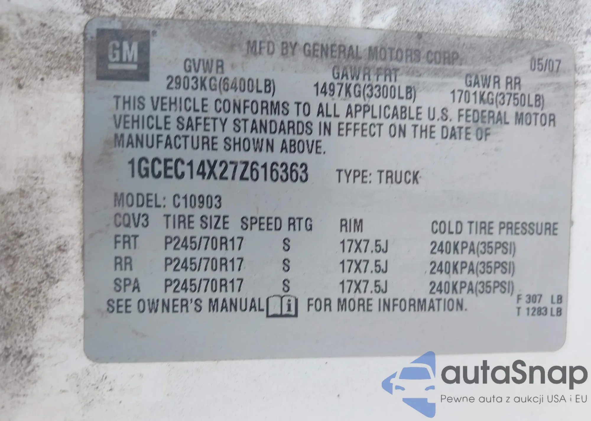 • VIN 1GCEC14X27Z616363