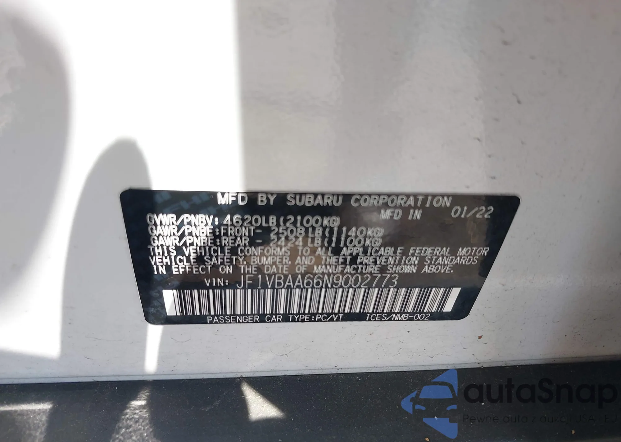 • VIN JF1VBAA66N9002773