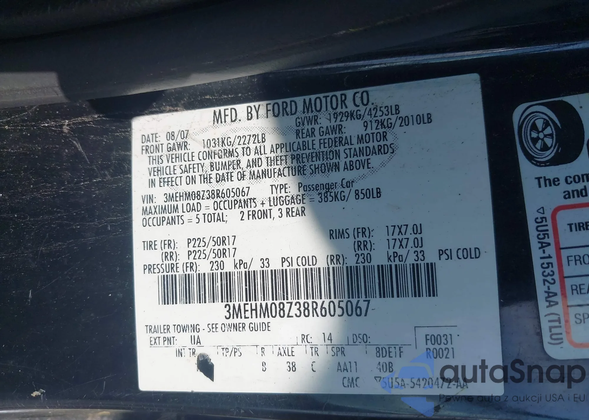 • VIN 3MEHM08Z38R605067