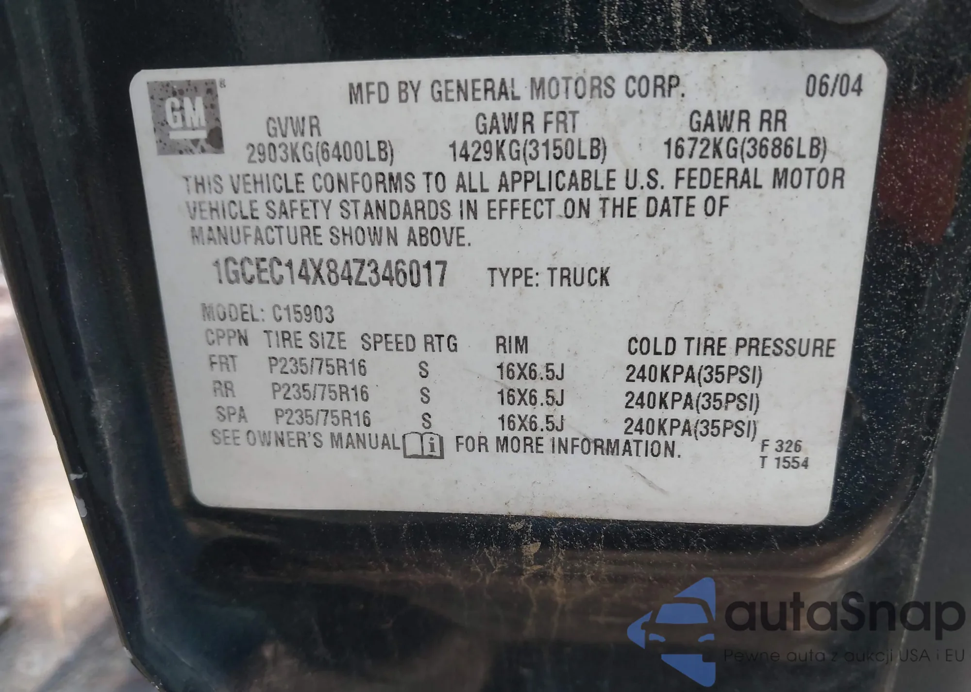 • VIN 1GCEC14X84Z346017