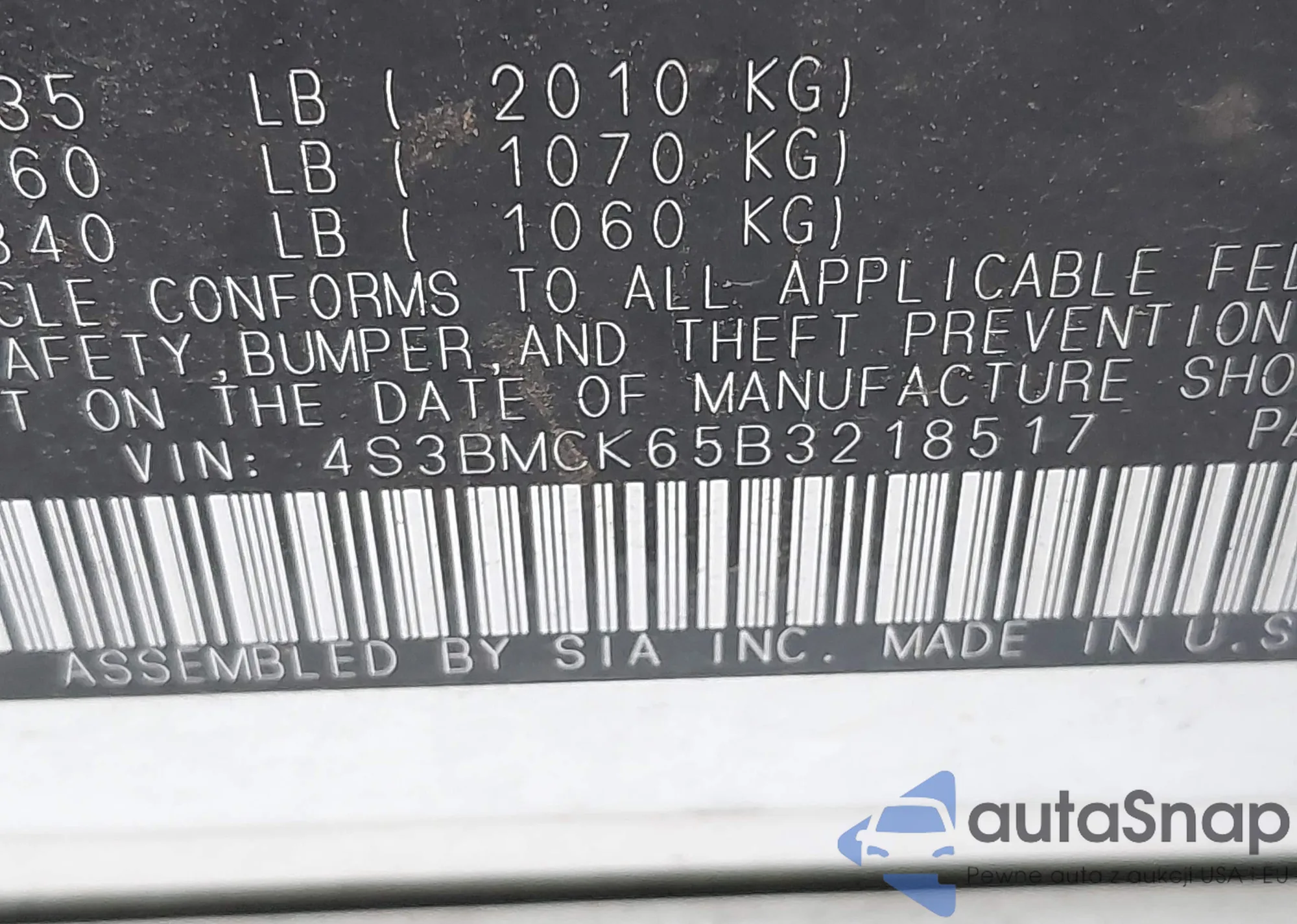 • VIN 4S3BMCK65B3218517