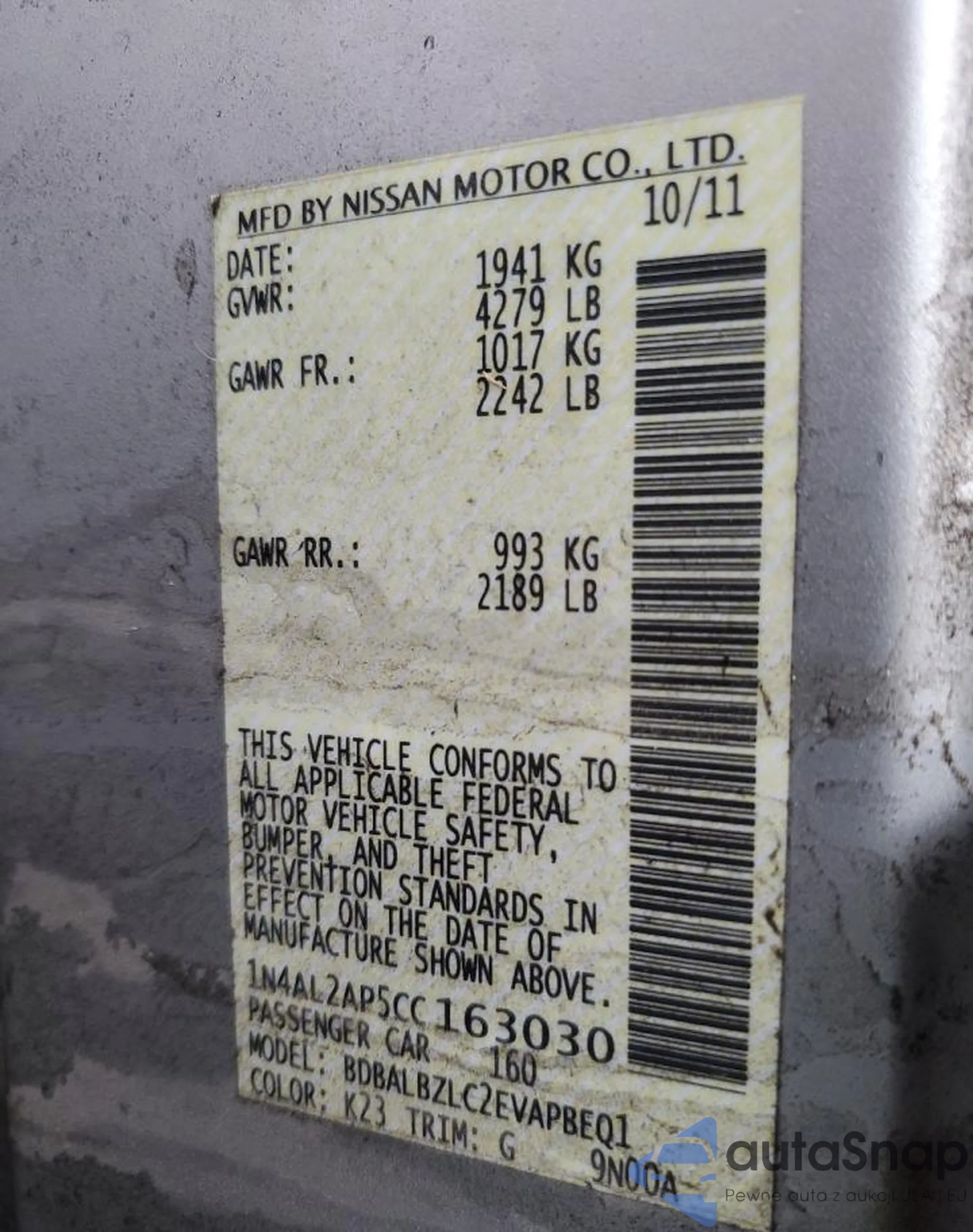 LOT: 55996945 VIN: 1N4AL2AP5CC163030