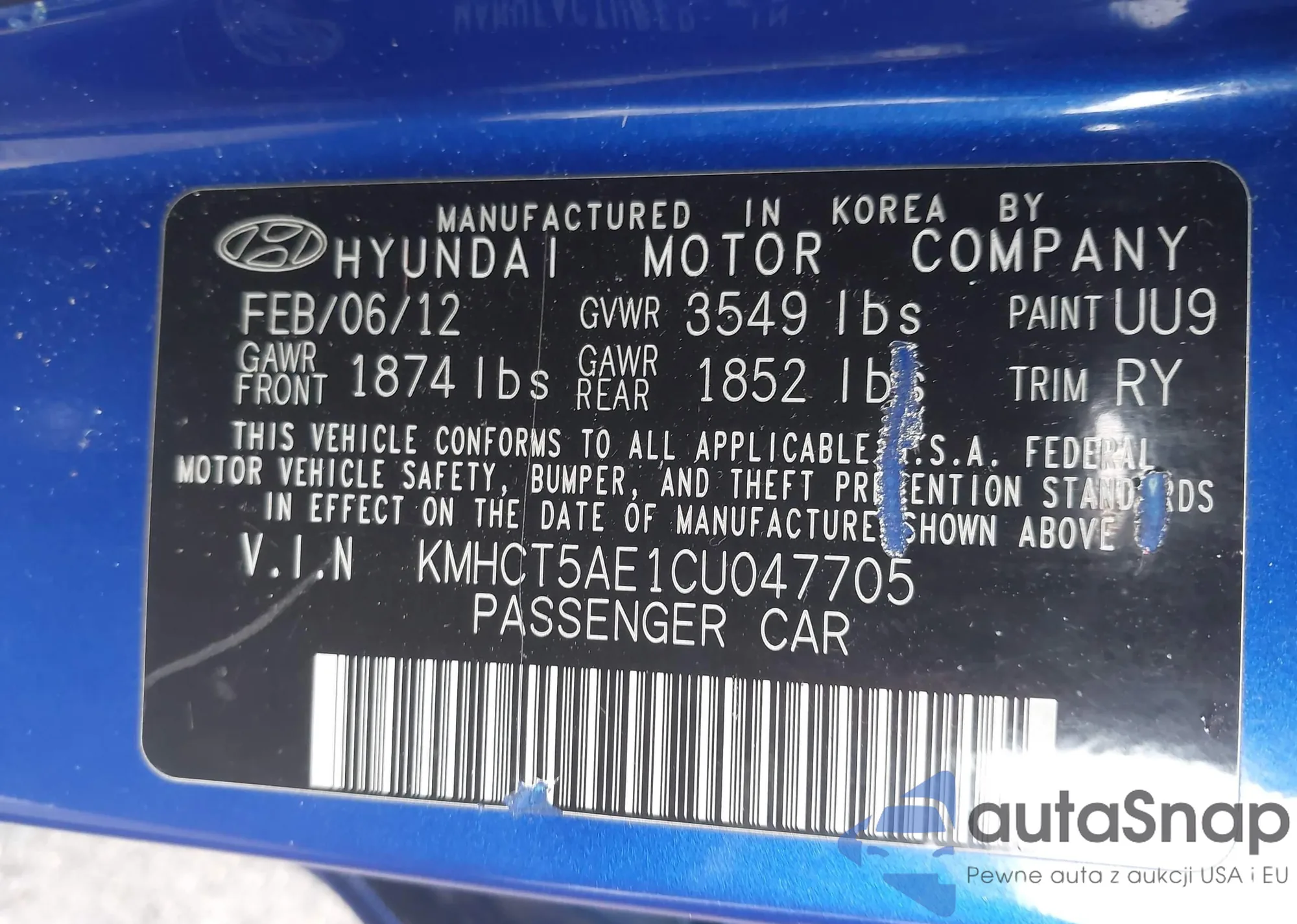 • VIN KMHCT5AE1CU047705