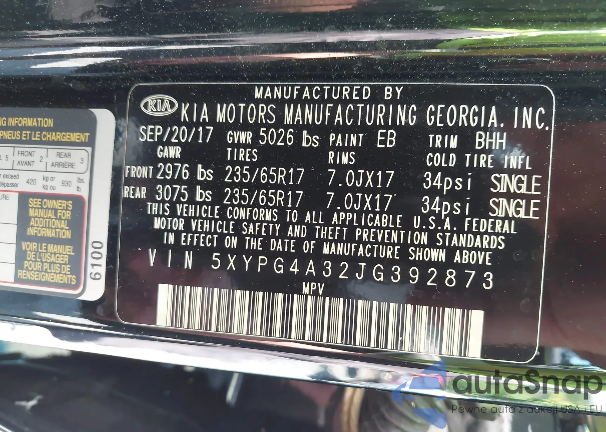 • VIN 5XYPG4A32JG392873