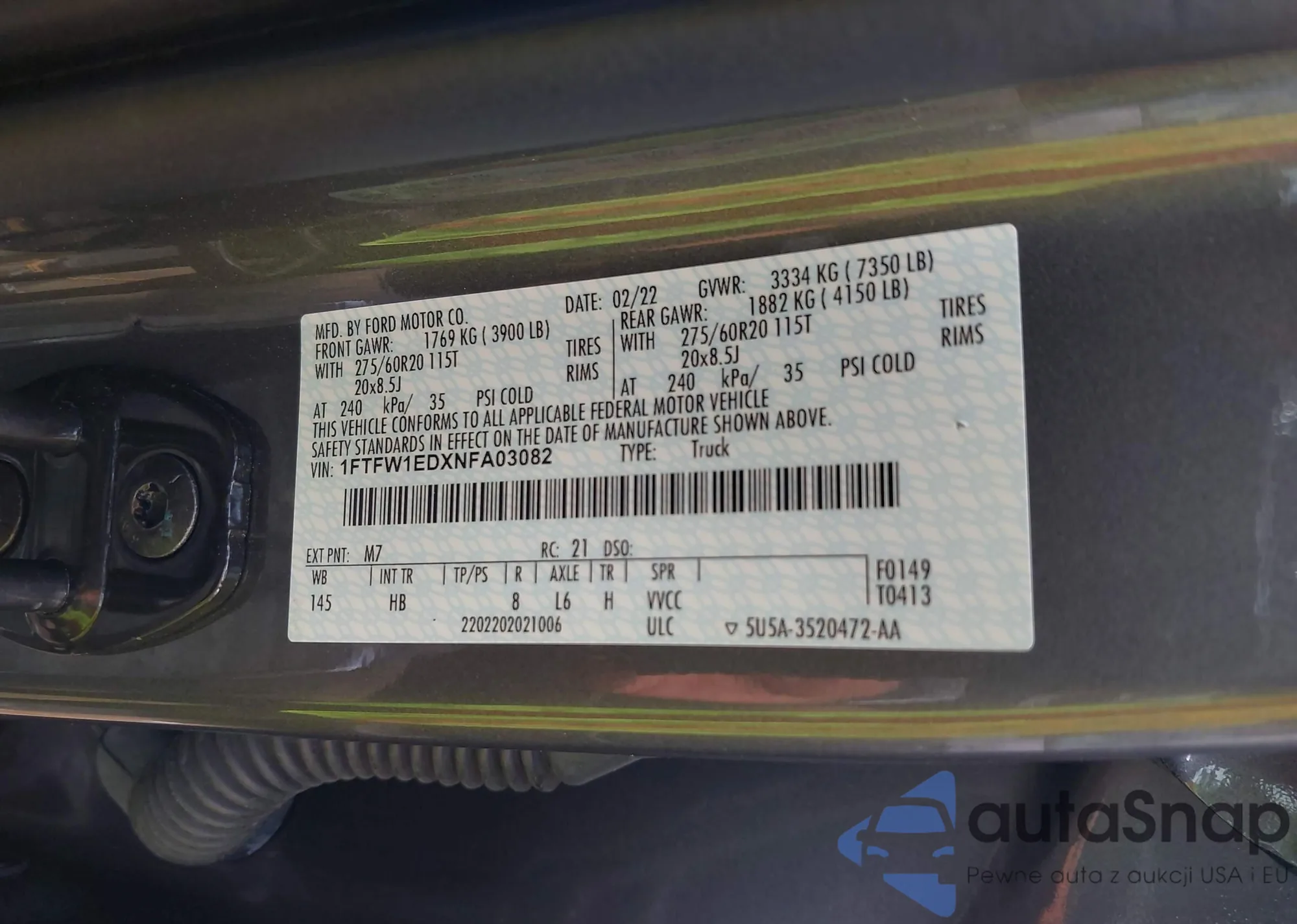 LOT: 42749550 VIN: 1FTFW1EDXNFA03082