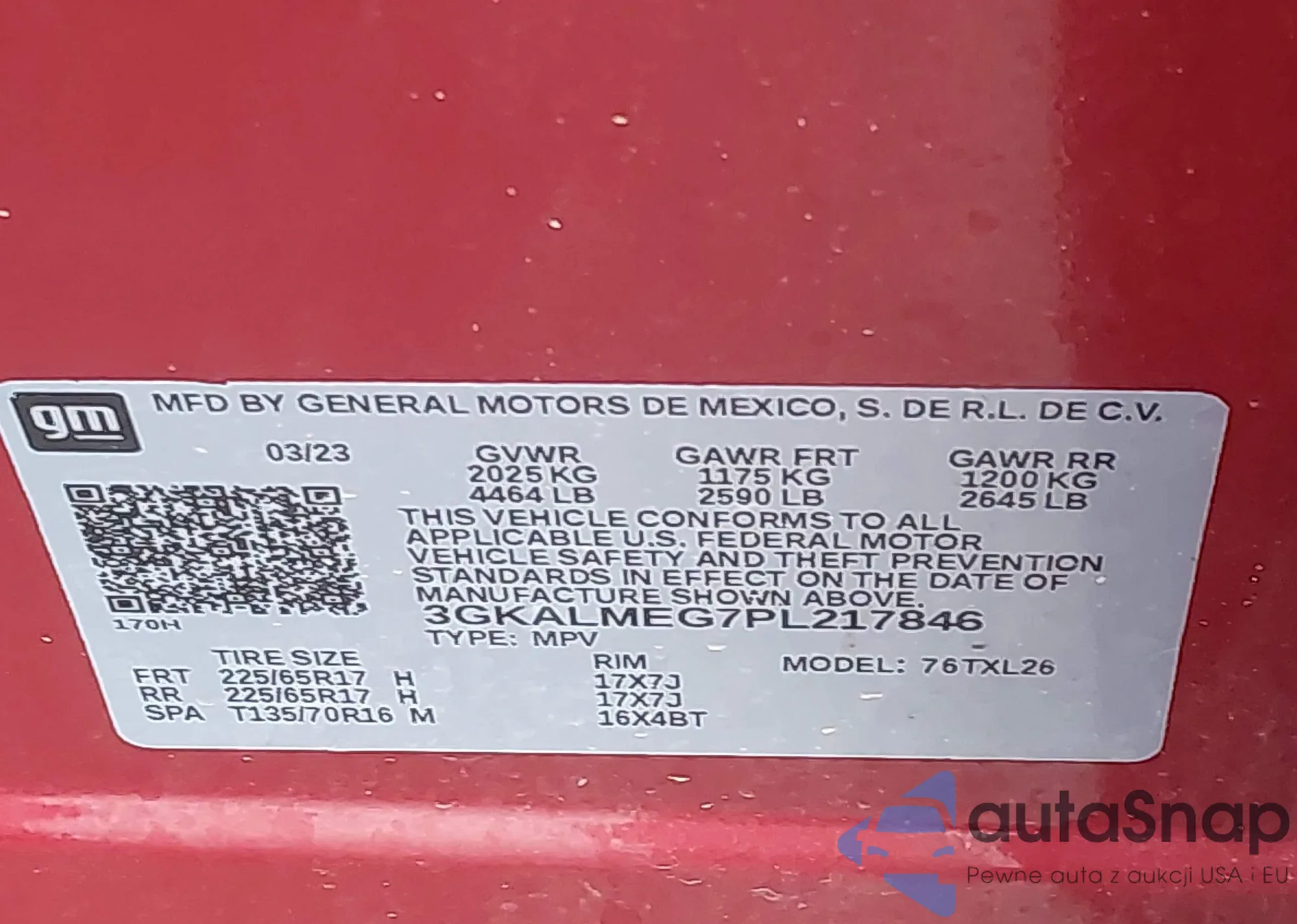 LOT: 42303391 VIN: 3GKALMEG7PL217846