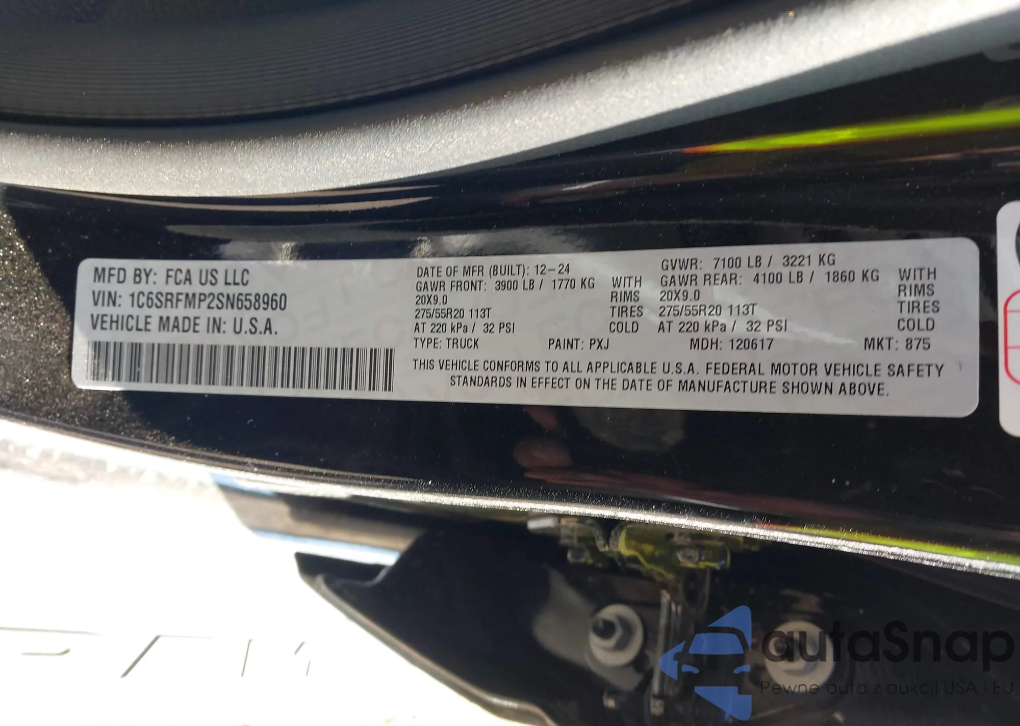 LOT: 41838862 VIN: 1C6SRFMP2SN658960