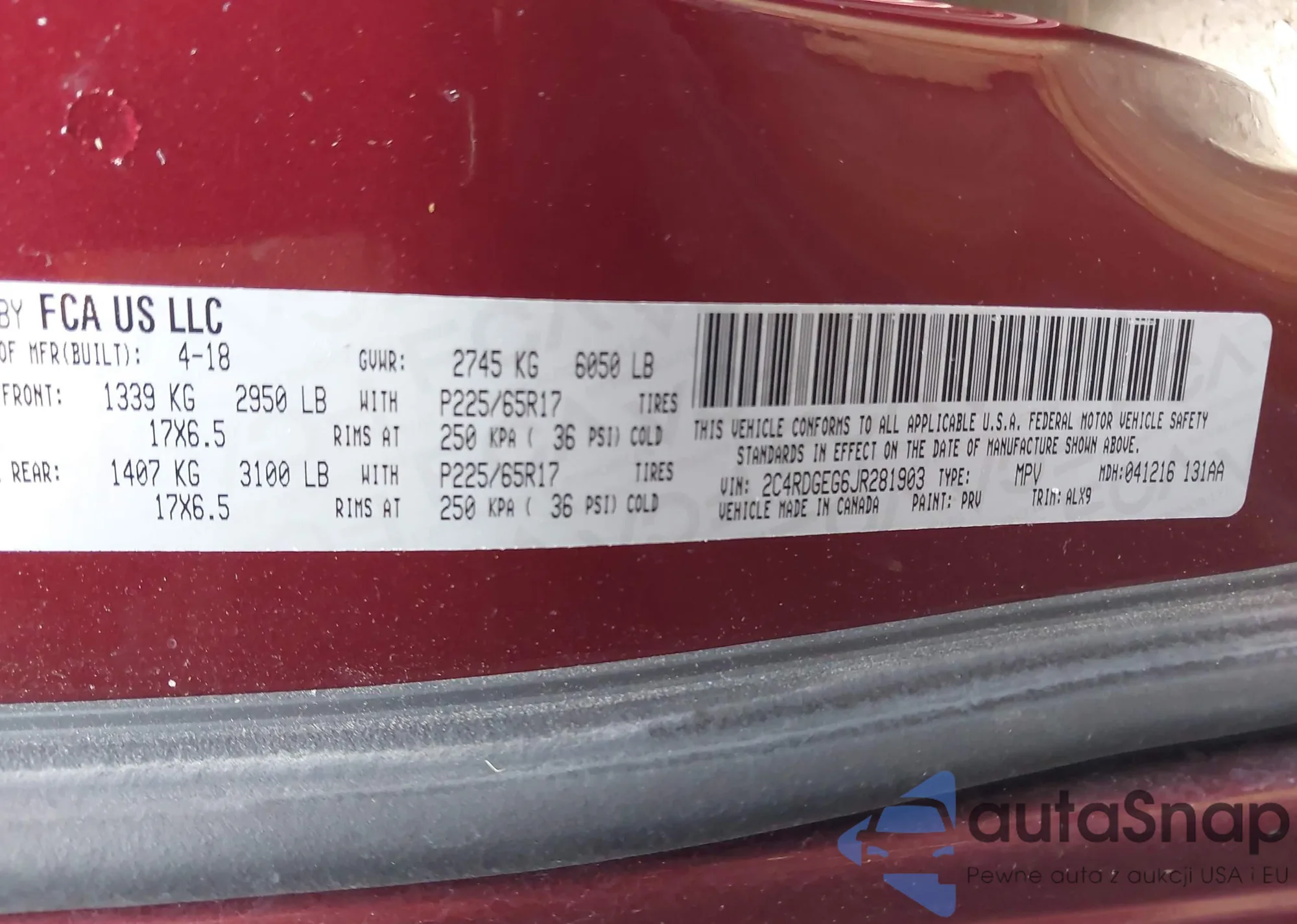 LOT: 42551169 VIN: 2C4RDGEG6JR281903