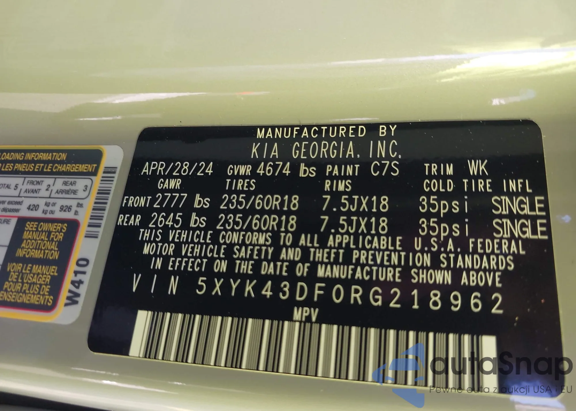 LOT: 42859991 VIN: KNAHG8C87A7300705