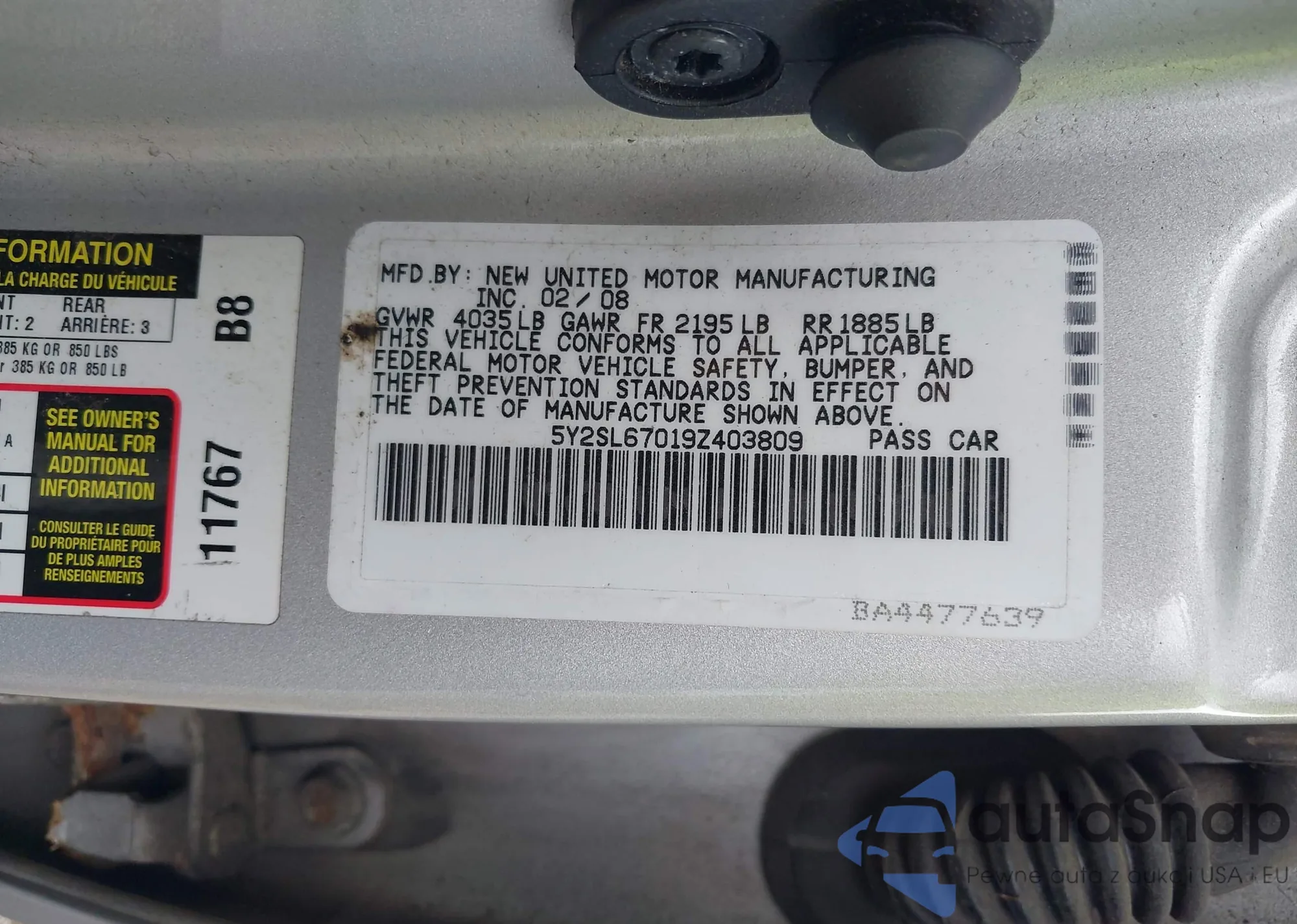 • VIN 5Y2SL67019Z403809