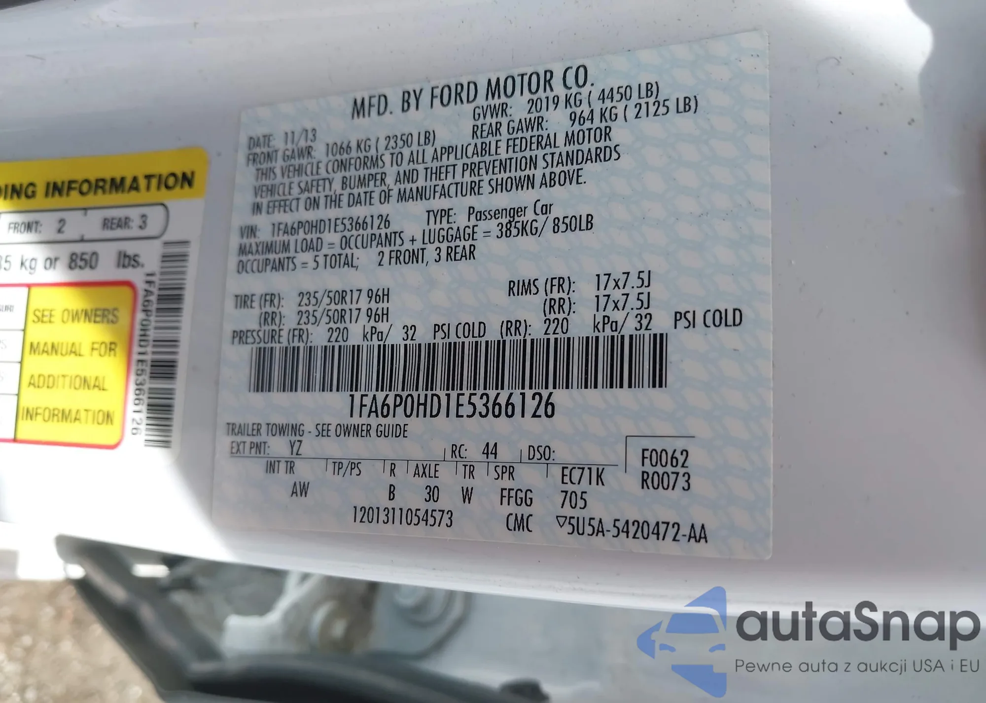 • VIN 1FA6P0HD1E5366126