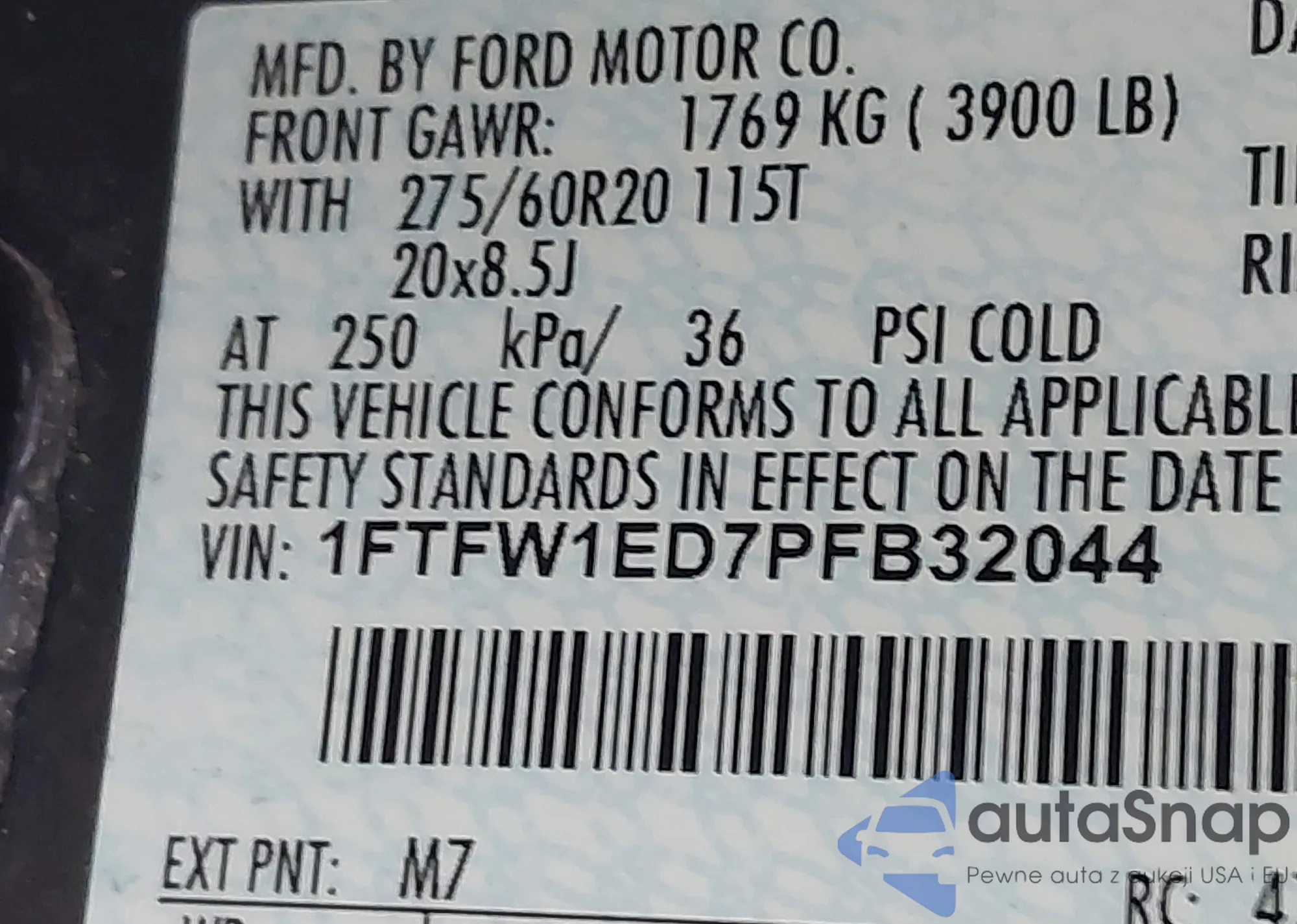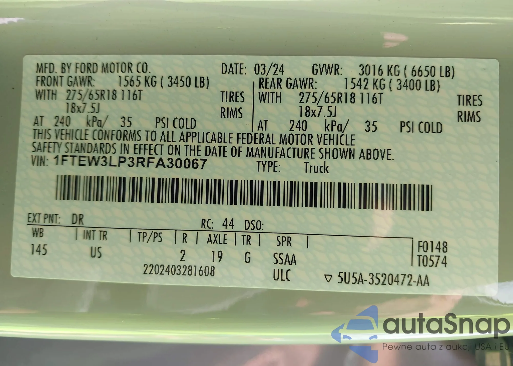 • VIN 1FTEW3LP3RFA30067