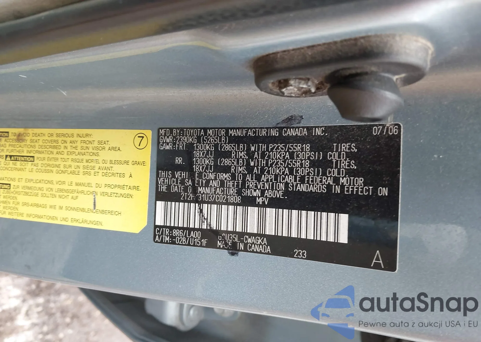 LOT: 42336990 VIN: 2T2HK31U37C021808