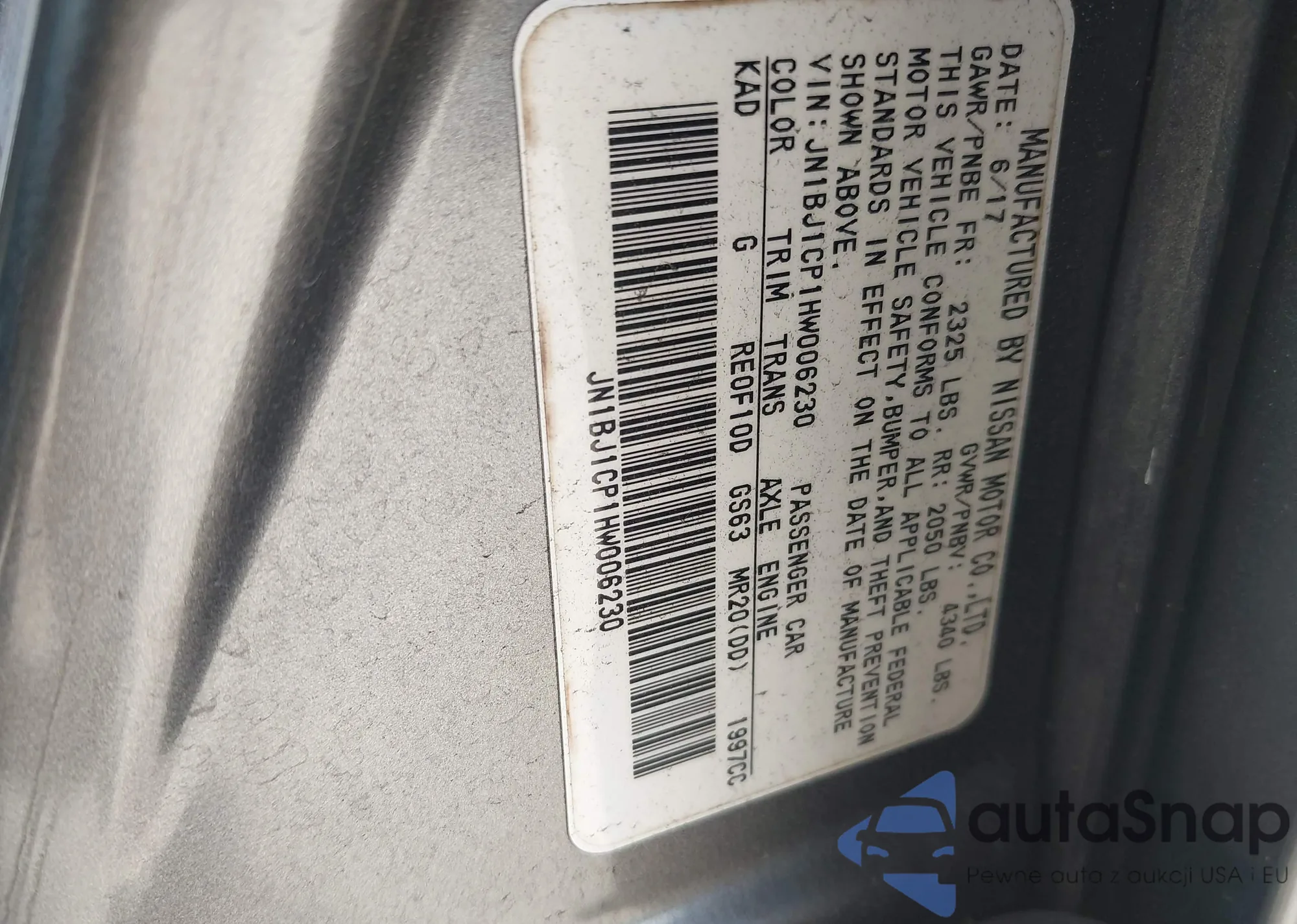 • VIN JN1BJ1CP1HW006230