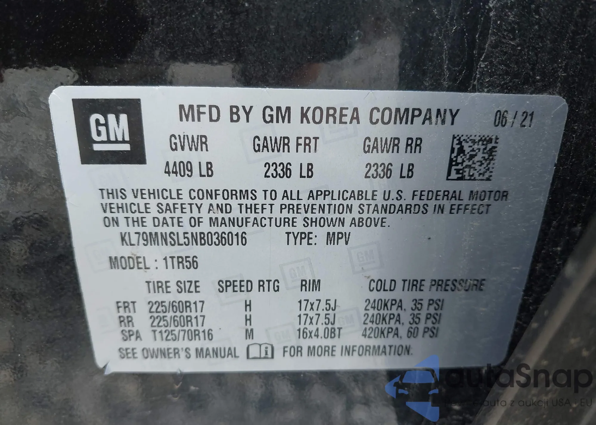 • VIN KL79MNSL5NB036016