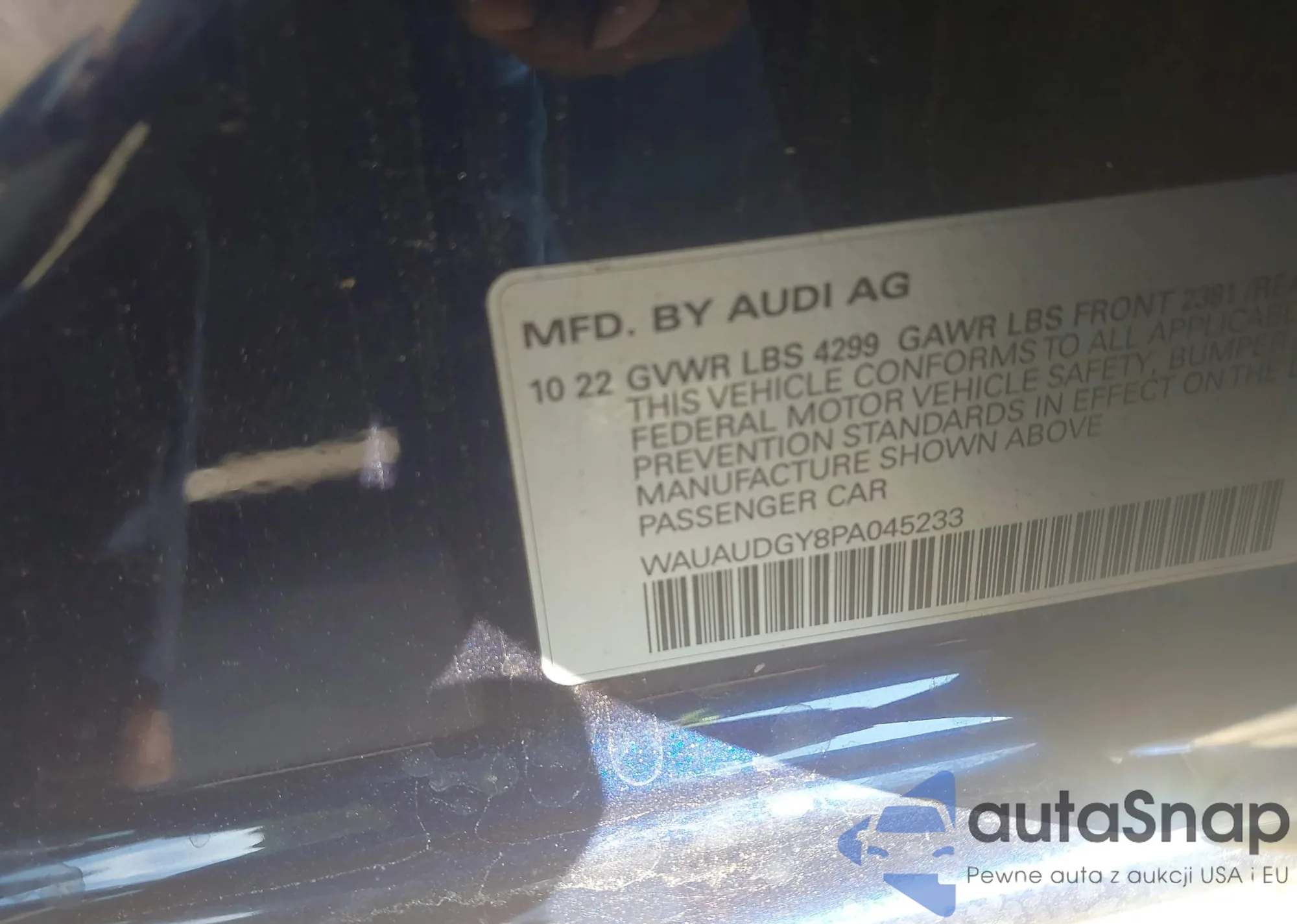 LOT: 42887407 VIN: WAUAUDGY8PA045233