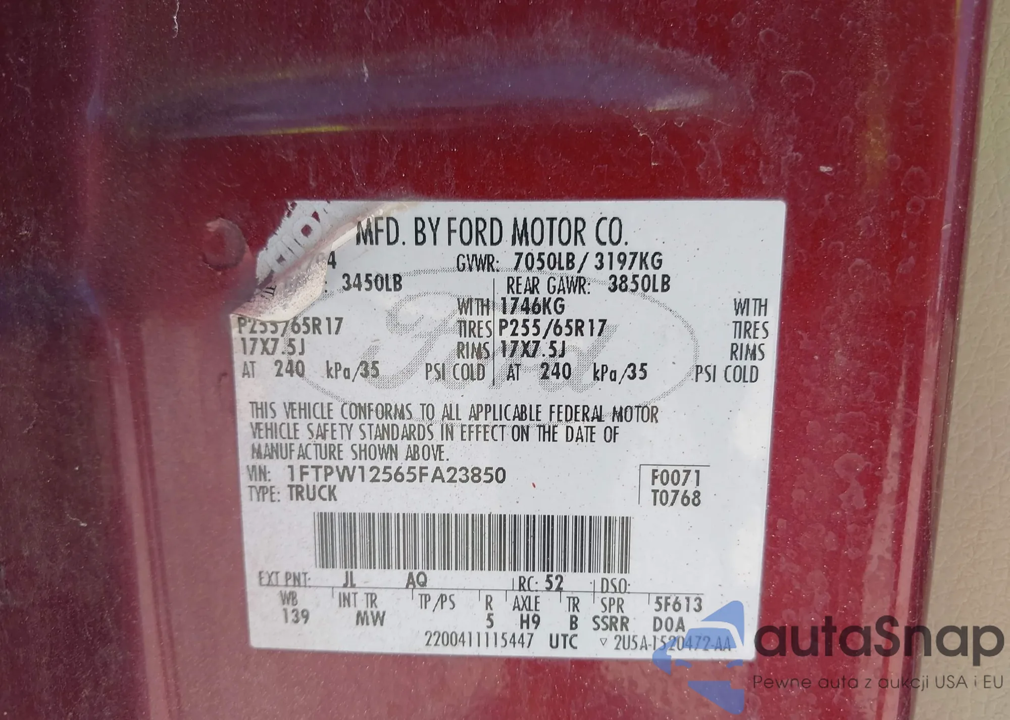 • VIN 1FT7W2B66FEC31040