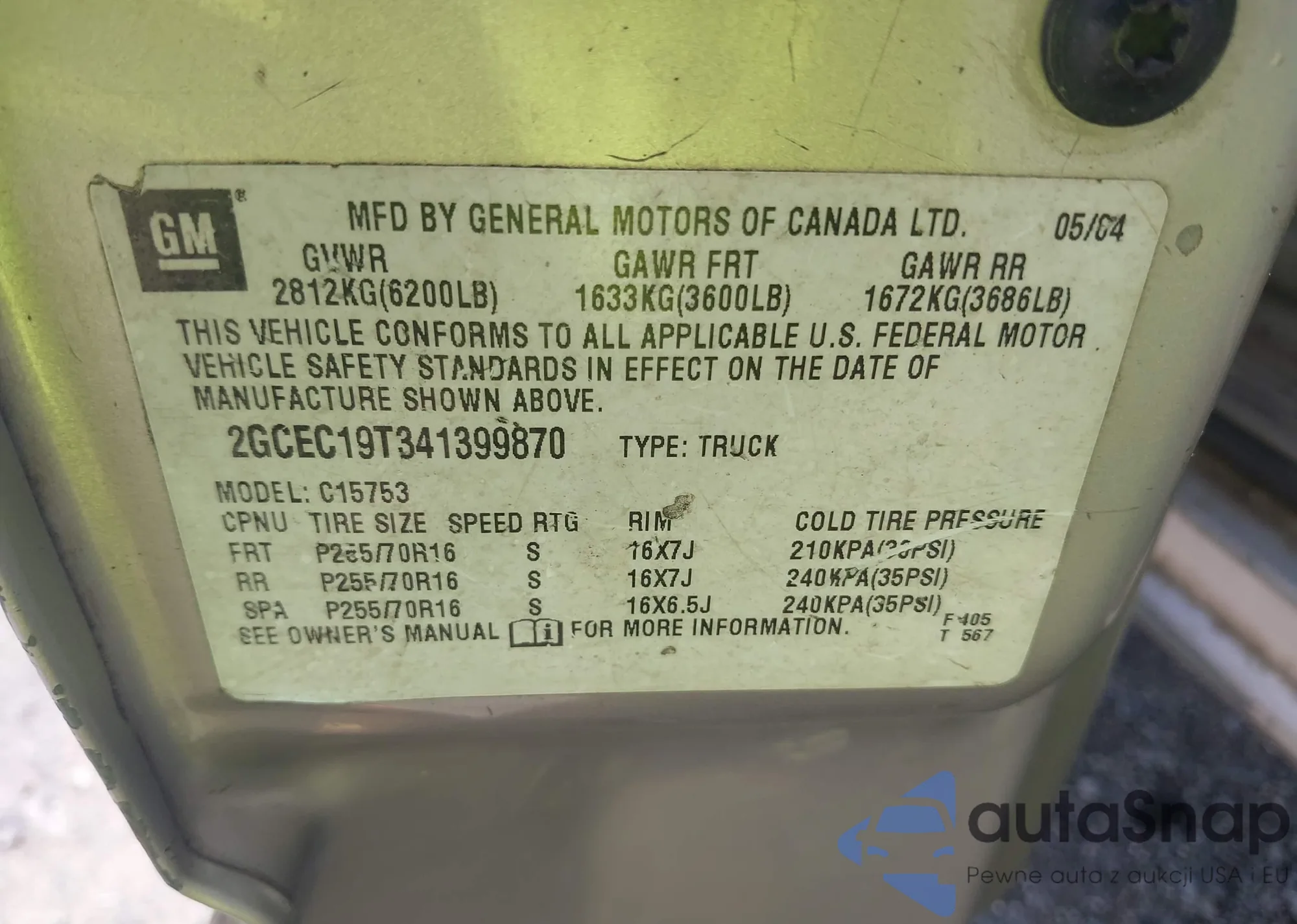 • VIN 2GCEC19T341399870