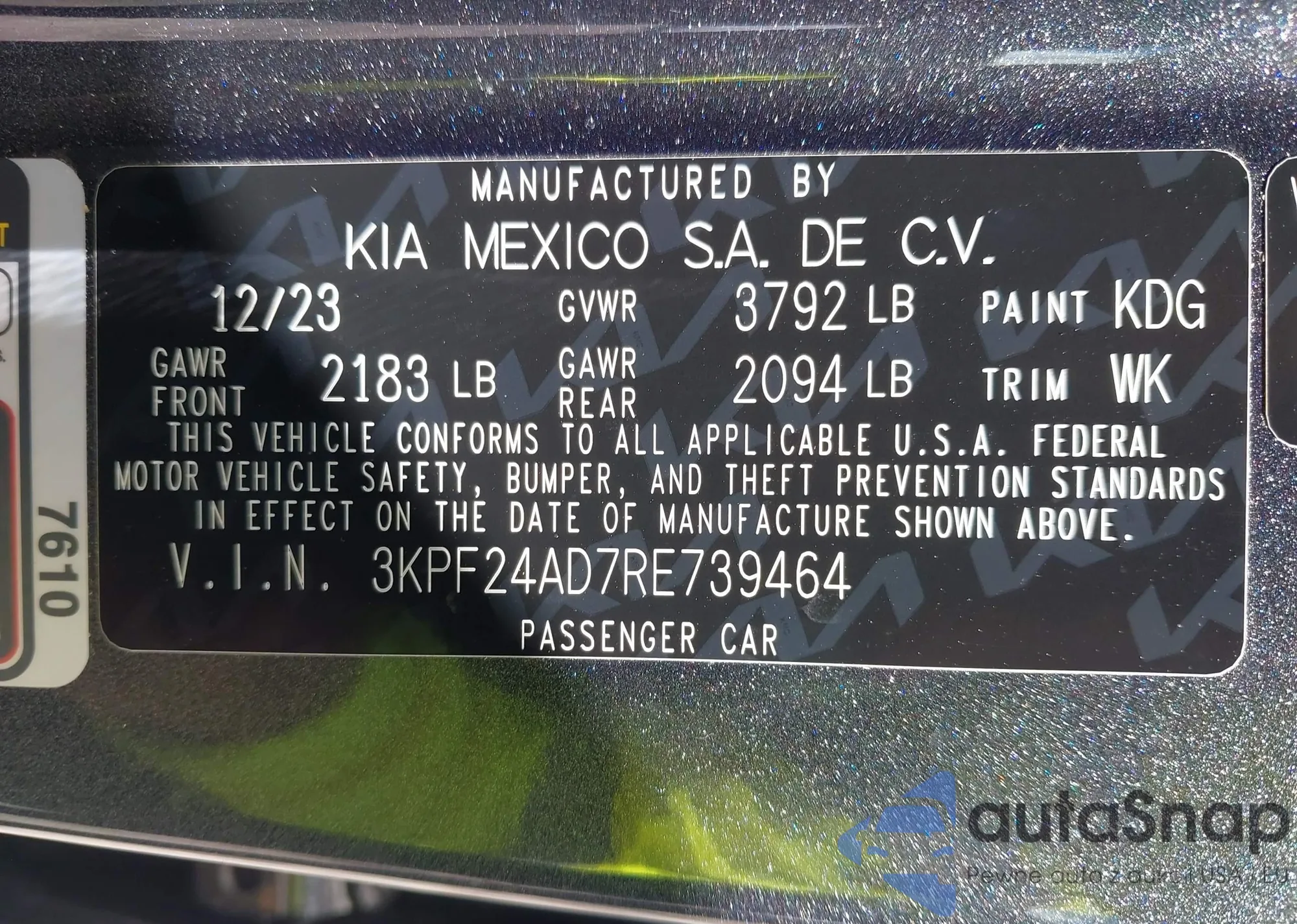 • VIN 3KPF24AD7RE739464