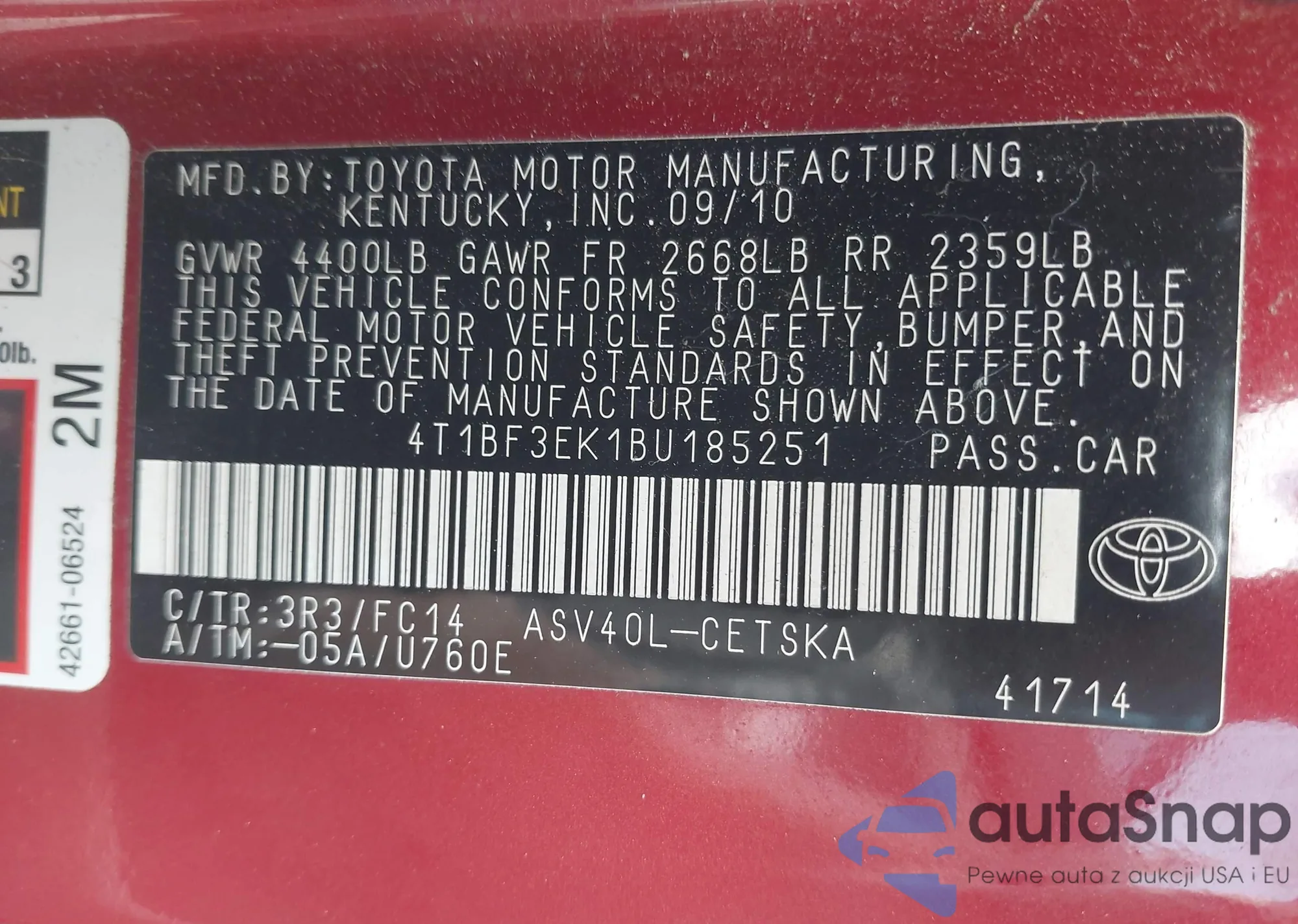 • VIN 4T1BF3EK1BU185251