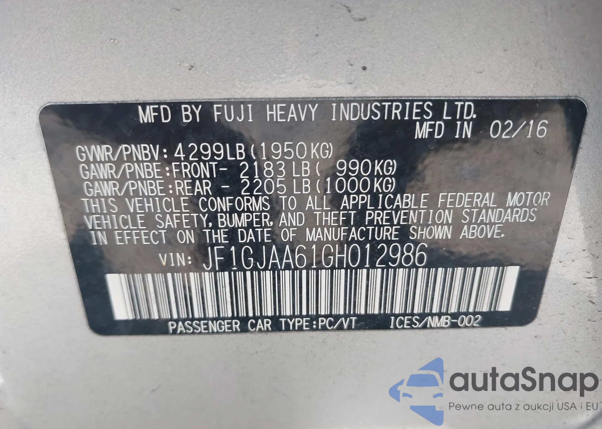• VIN JF1GJAA61GH012986