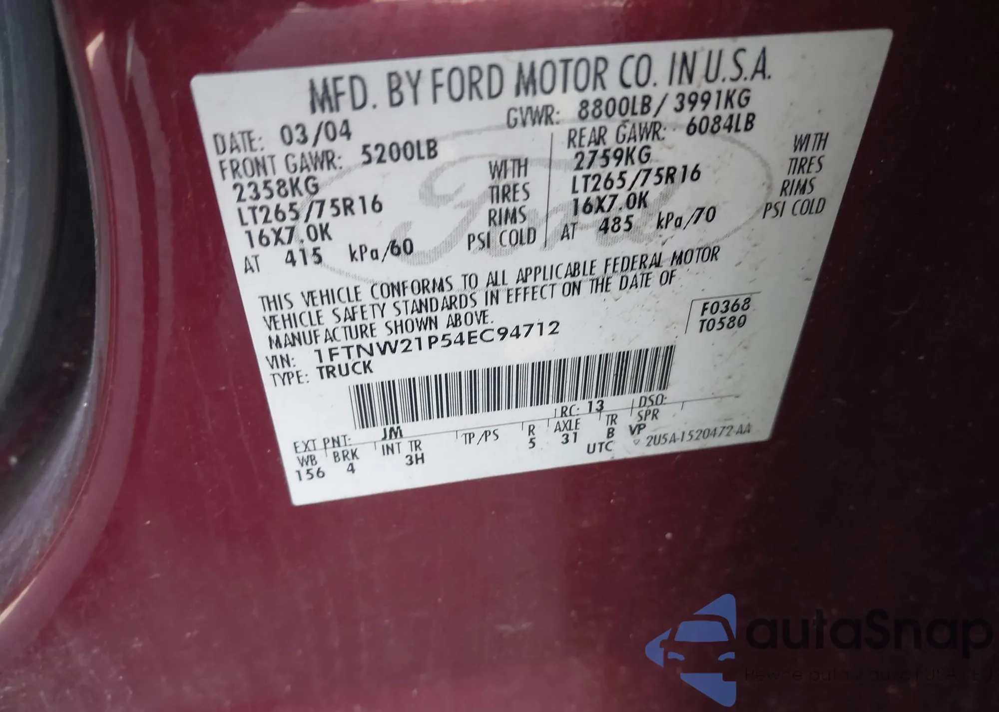 • VIN 1C4RDJDG4MC696715