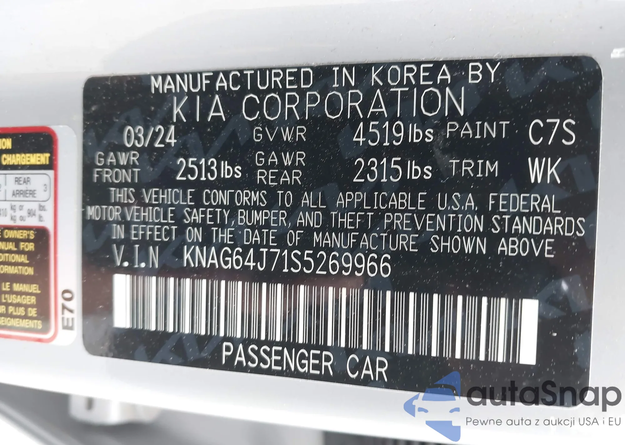 • VIN KNAG64J71S5269966